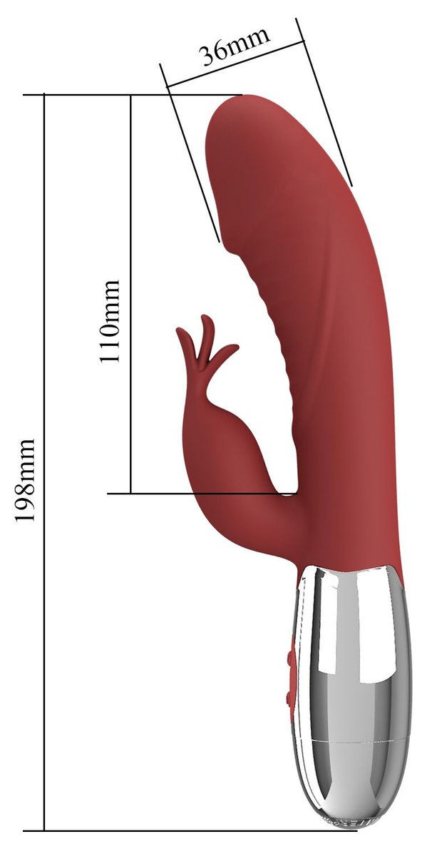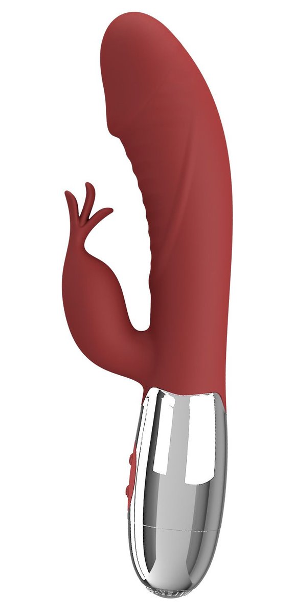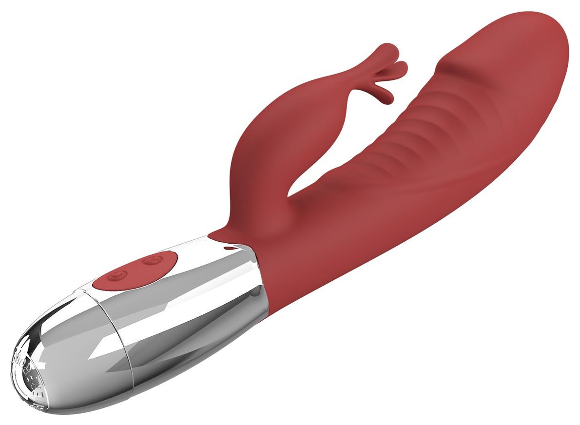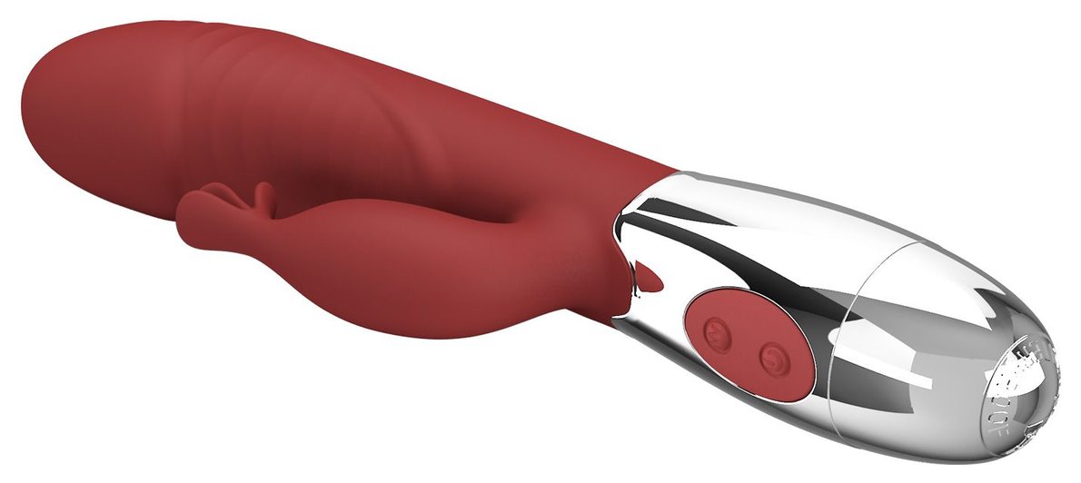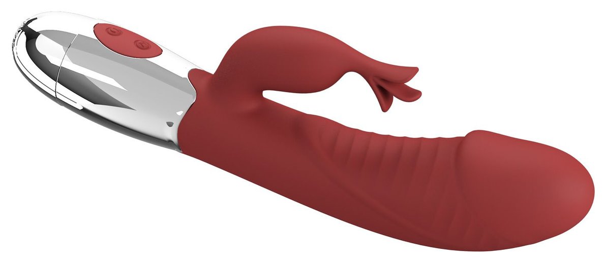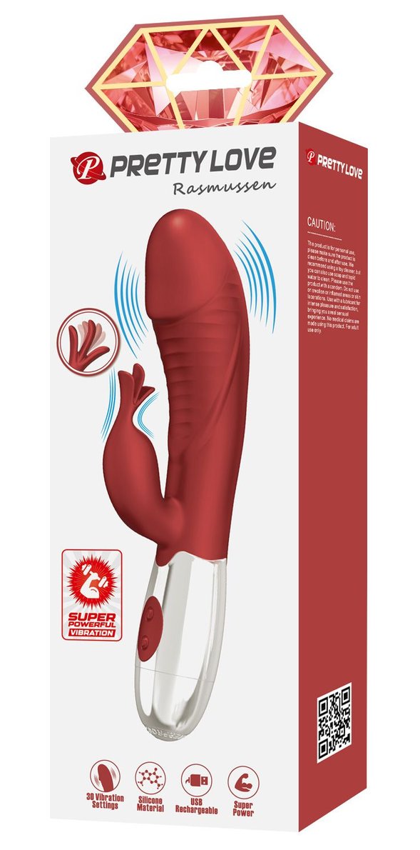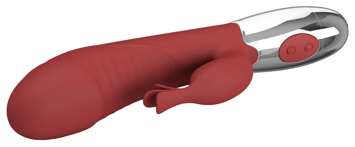 Красный вибратор со стимулятором клитора Rasmussen - 19,8 см