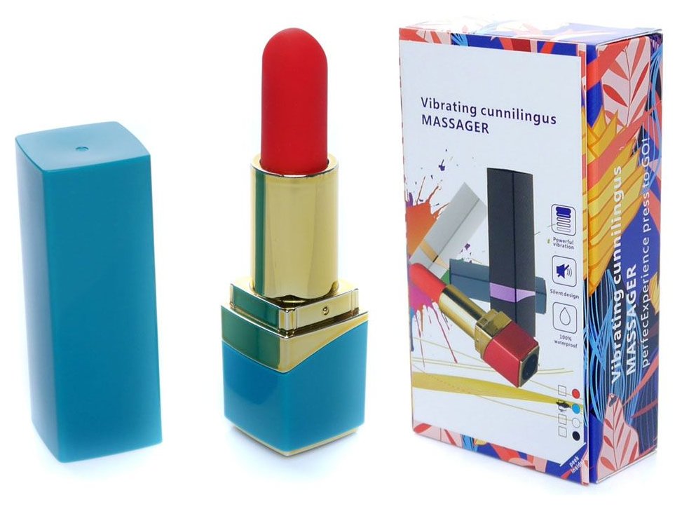 Голубой мини-вибратор в форме помады