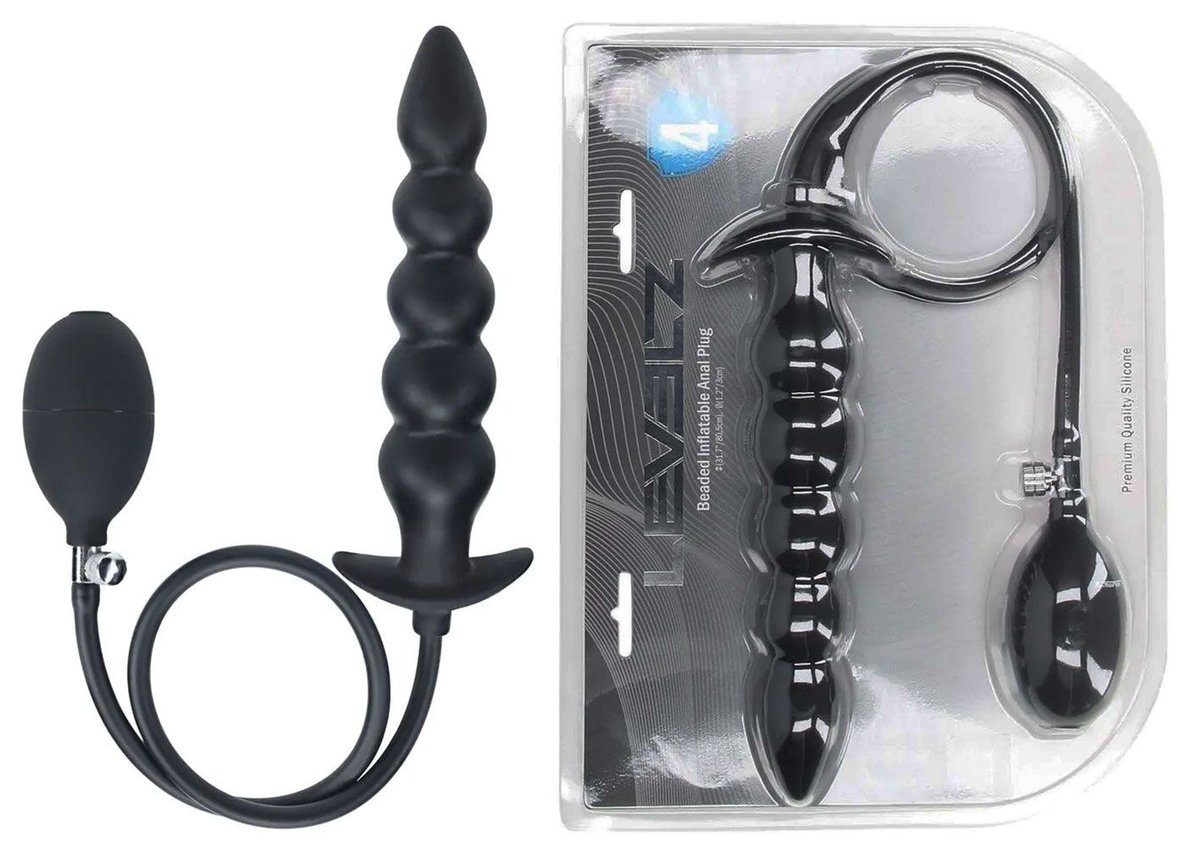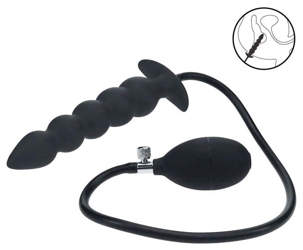 Черная анальная елочка с функцие расширения Beaded Inflatable Silicone Anal Plug