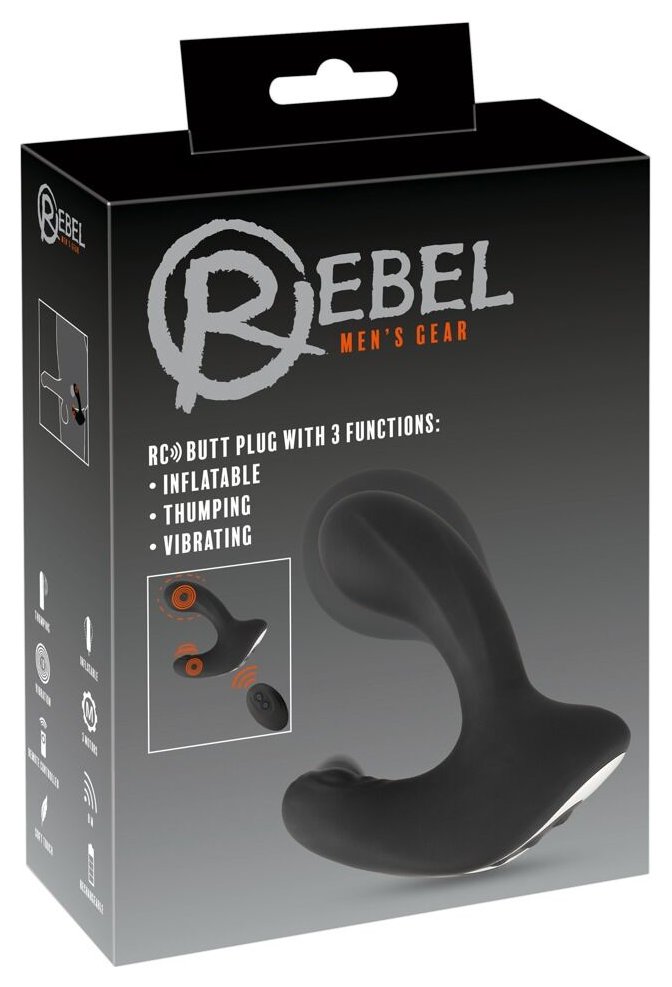 Черная анальная вибропробка с функцией расширения RC Butt Plug with 3 functions. 3 мощных двигателя обеспечивают интенсивное анальное удовольствие. Пробка легко надувается одним нажатием кнопки - для удивительно полных ощущений и идеальной тренировки анального растяжения. С помощью практичного пульта дистанционного управления можно удобно управлять 10 различными режимами вибрации и пульсирующего постукивания, а также функцией сброса давления воздуха. Рабочая длина - 9,8 см. максимальный диаметр при расширении - 5,7 см.