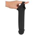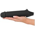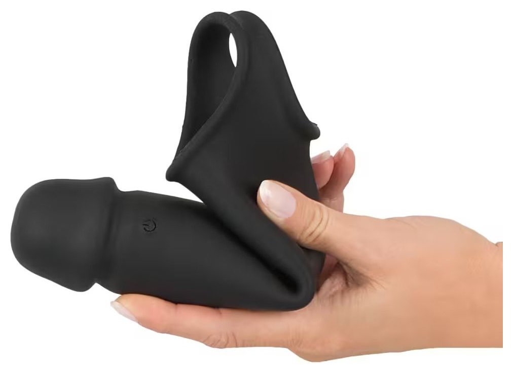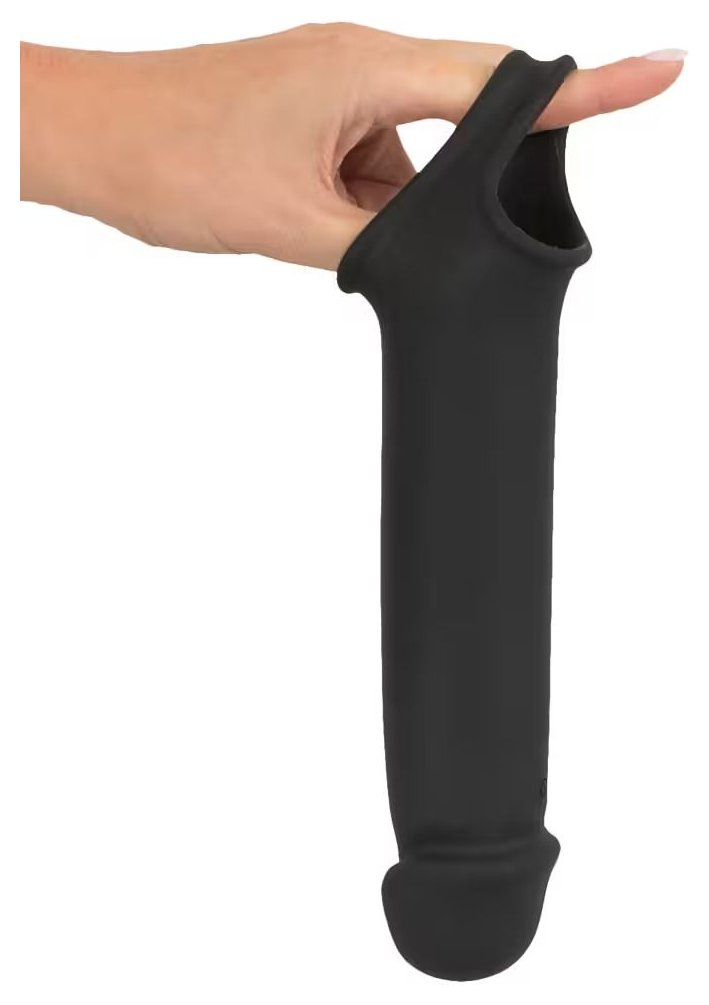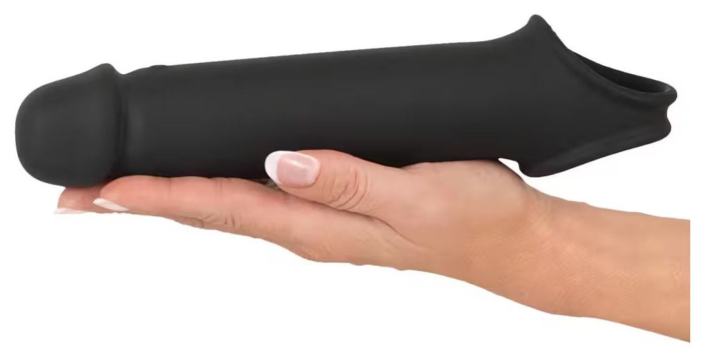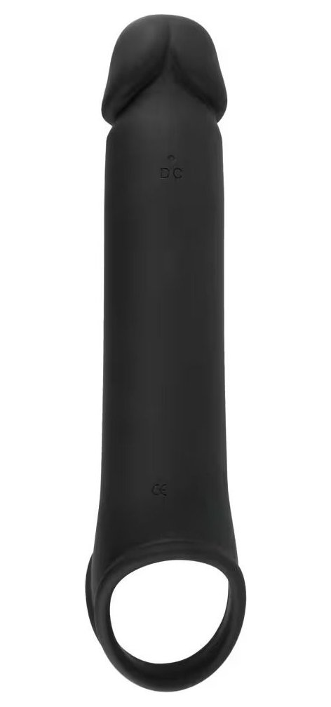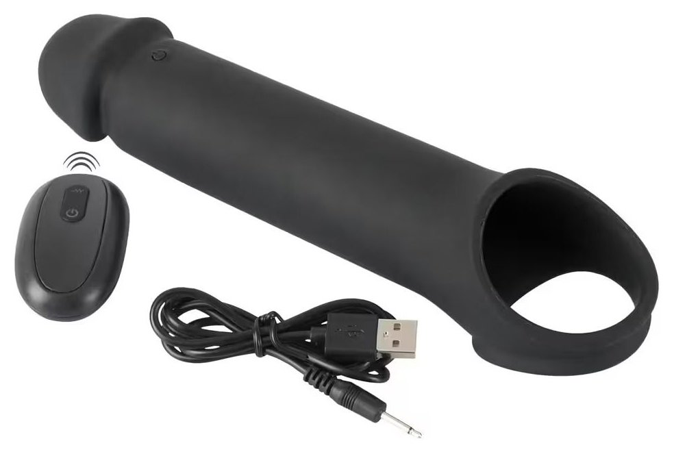 Эластичная насадка для пениса с вибрацией и хомутом для яичек, предназначенная для увеличения длины пениса и поддержки эрекции. Головная часть насадки увеличивает длину пениса до 8 см. Насадка плотно облегает пенис и легко надевается. Хомут для яичек обеспечивает надёжную фиксацию и помогает удерживать насадку на месте во время использования. Встроенный вибромотор имеет 10 режимов вибрации, управляемых с помощью беспроводного пульта (дальность до 12 метров). Рабочая длина - 19 см. Длина полости - 12 см, диаметр - 3,8 см.
