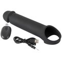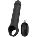 Черная вибронасадка для пениса с хомутом для мошонки и пультом ДУ Remote Controlled Penis Extension