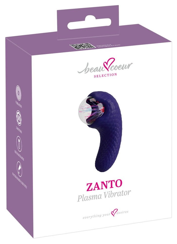 Реверсивный плазменный вибратор ZANTO от beau cœur удивляет интенсивными вибрациями и плазменным стеклянным шариком, который загорается при соприкосновении с кожей. Отличный эффект, когда вибратор используется для исследования внешних зон удовольствия. Мощные вибрации также стимулируют и превращают мистическое световое шоу в интенсивное переживание. Магия, которая проникает под кожу! Уникальный дизайн с элегантной ромбовидной структурой не только обеспечивает надежный захват во время игры и удовольствия. Ручку можно использовать и как накладной вибратор и даже вводить немного в вагину или анус. Удобная, экспериментальная мультиигрушка для удовольствия в одиночку и вдвоем, дома и в дороге! 2 мощных, но тихих моторчика с 10 режимами вибрации в нижней части рукоятки и в верхней части плазменного шарика обеспечивают большое разнообразие при получении удовольствия. Обе стороны игрушки могут управляться по отдельности одним нажатием кнопки - так, как вам удобно. Изготовленный из шелковисто-мягкого силикона и с гладким стеклянным шариком, плазменный вибратор ZANTO скользит по коже как по волшебству - и ласкает каждый участок тела и интимные зоны. Максимальный комфорт с легкими вибрациями!