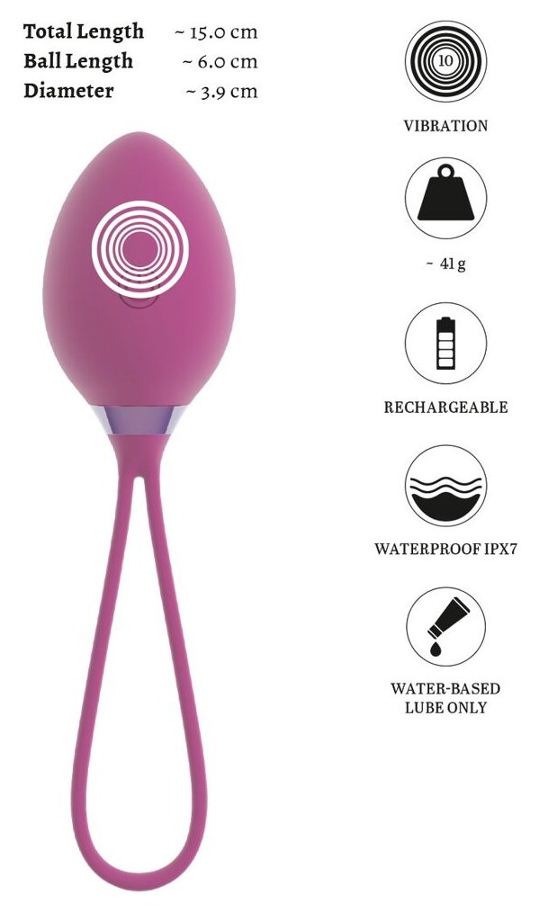 Виброшарик ROVANA RC Love Ball ублажает вас глубокими вибрациями во влагалище. Приятная стимуляция и эффективная тренировка тазового дна идеально сочетаются. Тихо и незаметно, чтобы никто не заметил! Вы можете наслаждаться этим тайным интенсивным удовольствием в любом месте и в любое время - и удобно управлять им с помощью пульта дистанционного управления. 10 режимов вибрации с 6 интенсивностями предлагают большое разнообразие и подходящую динамику для любых потребностей. Маленький пульт дистанционного управления с радиусом действия 6 метров может также управляться вашим партнером. Идеально подходит для игр с сюрпризом и контролем дома и в дороге! Рабочая длина - 6 см.