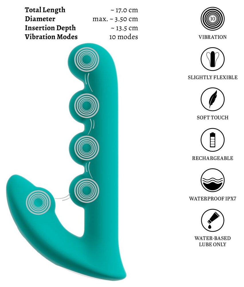 Вибратор SYLORA Unique Beads Vibrator с уникальным дизайном одновременно воздействует на вагину и клитор с помощью особой вибростимуляции. Для этого он концентрирует свою силу в каждом круглом выступе и бьет по вагинальным и клиторальным нервам удовольствия прямо в точку. 10 различных режимов тихой вибрации обеспечивают разнообразное удовольствие внутри и снаружи. Особый режим, при котором вибрация автоматически переходит от одного шарика к другому, особенно изобретателен. Режимы удобно регулируются прямо на игрушке одним нажатием кнопки. Благодаря своей шелковисто-мягкой поверхности силиконовый вибратор легко вводится и скользит как бы сам по себе. Слегка гибкий, он идеально подстраивается под ваше тело и игру. Максимальный комфорт с динамичной двойной стимуляцией! Перезаряжаемый - USB-кабель для зарядки входит в комплект. Рабочая длина - 10,5 см.