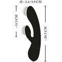Вибратор-кролик с 2 моторами для стимуляции током. Электростимуляция и вибрация - все в одной игрушке. 10 режимов электростимуляции (вал). 10 режимов вибрации (стимулятор клитора). Функциями можно управлять отдельно. Перезаряжаемый - в комплекте USB-кабель для зарядки. Рабочая длина - 11,5 см.