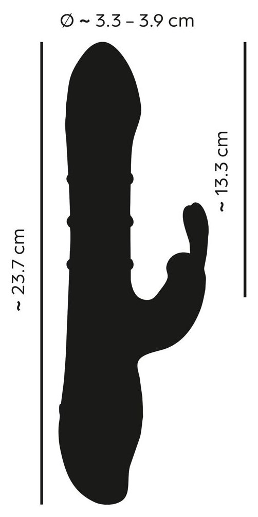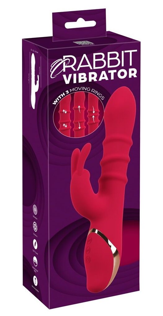 Вибратор-кролик с 3 массажными кольцами. Стимулирует вагину и клитор одновременно. Массажные кольца на валу двигаются вверх и вниз. 10 режимов вибрации в наконечнике вала и клиторе. Массаж подвижными кольцами в 3 режимах. Силикон с шелковистой мягкой на ощупь текстурой. Водонепроницаемый. Перезаряжаемый - в комплекте USB-кабель для зарядки. Рабочая длина - 13,3 см.