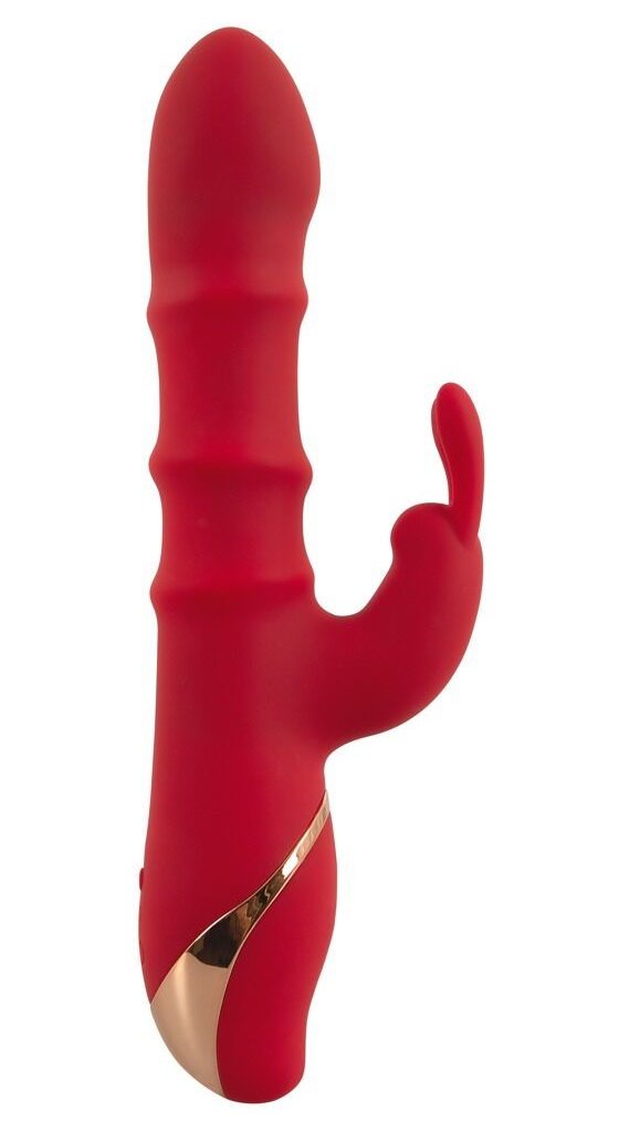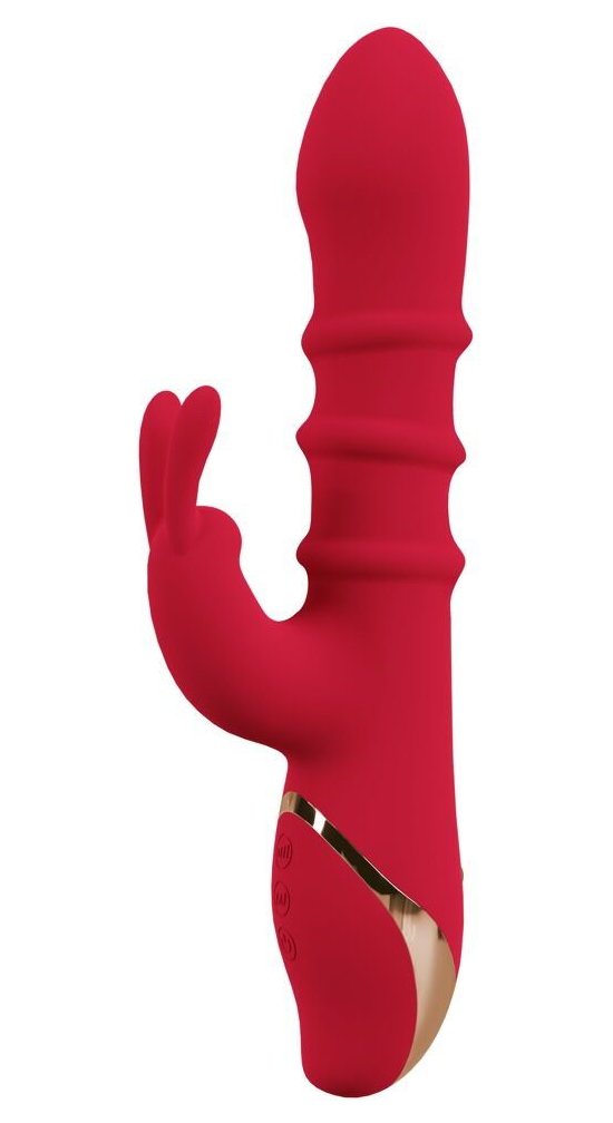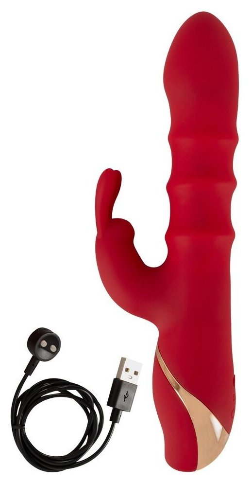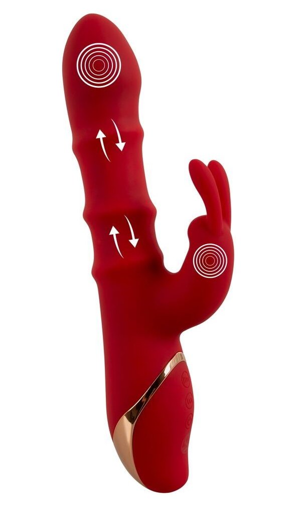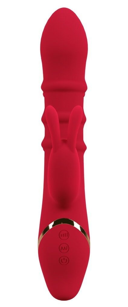 Красный вибратор-кролик с 3 подвижными кольцами Rabbit Vibrator with 3 Moving Rings - 23,7 см