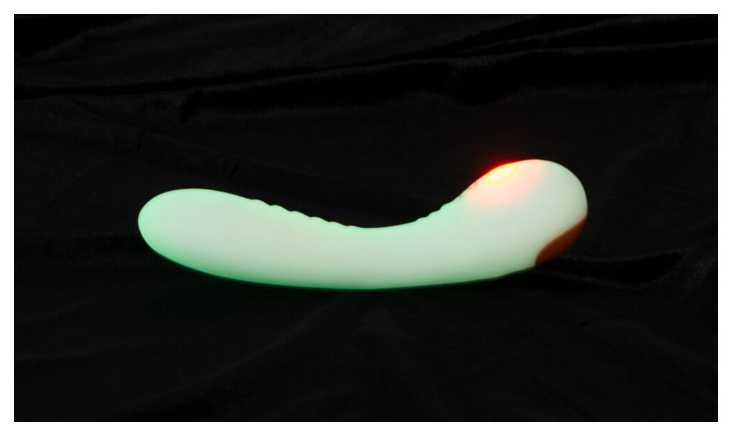 Вибратор, который светится в темноте долгое время - даже под водой. Просто предварительно поднесите водонепроницаемый силиконовый вибратор к источнику света (например, лампе). Идеально изогнутый легкий вибратор подходит не только для стимуляции зоны G. Его закругленный кончик также идеально подходит для стимуляции всех внешних точек удовольствия и анальной области. Настоящая изюминка для сольной и любовной игры в таинственной темноте! 9 мощных режимов вибрации удобно управляются прямо на вибраторе нажатием кнопки (также со светодиодной подсветкой). Мощный двигатель обеспечивает надежную мощность. Перезаряжается и поставляется с магнитным зарядным кабелем USB. Рабочая длина - 13 см.