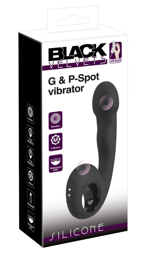 Идеально изогнутый вибратор для точки G и P от Black Velvets с выразительной вибромассажной головкой. Для точной стимуляции вагинальной G-точки и/или анальной P-точки (простаты). Два мощных и тихих моторчика обеспечивают 10 интенсивных режимов вибрации в головке и на ручке. Они регулируются по отдельности нажатием кнопки на практичной ручке-кольце. Даже в ванной и душе, ведь вибратор G P-Spot водонепроницаем. Нескользящее кольцо также обеспечивает безопасное анальное использование без соскальзывания. Перезаряжаемый - USB-кабель для зарядки входит в комплект.