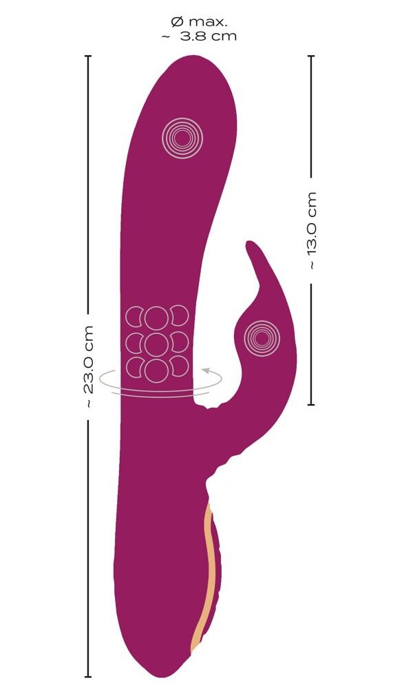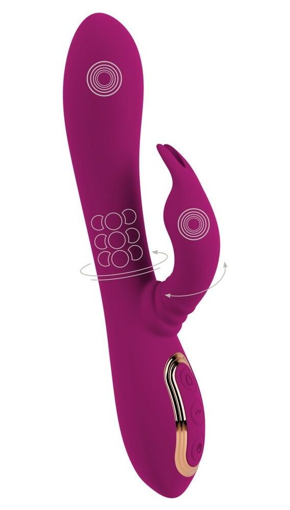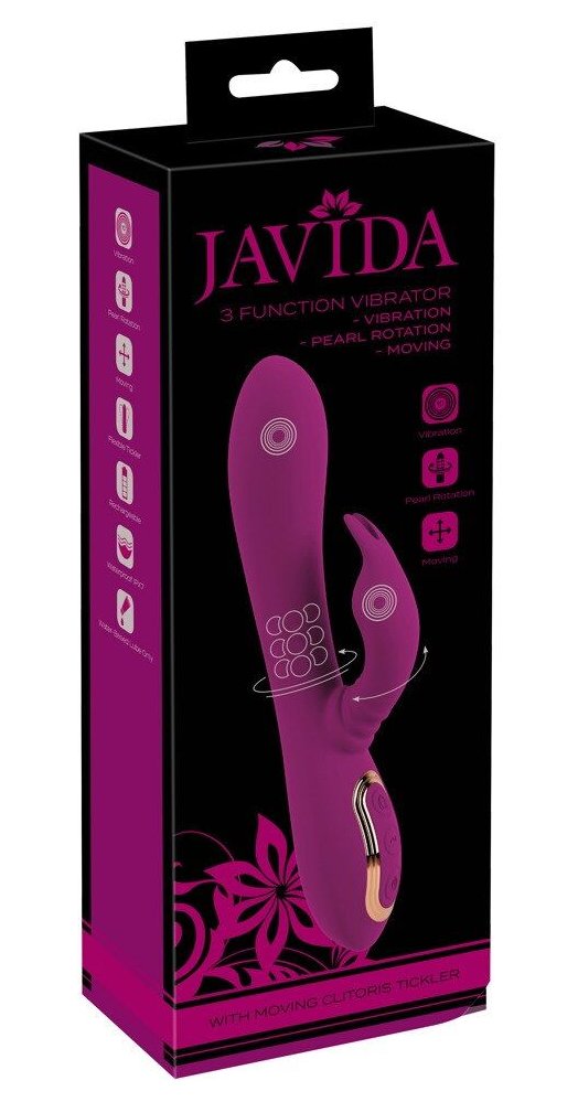 Вибратор-кролик с 3 моторчиками. Вращающиеся массажные бусины в стволе. Кролик для клитора двигается вперед и назад. Вибратор воздействует на вагину и клитор одновременно. 10 режимов вибрации ствола и зайчика. Движение и вращение в 5 скоростях. Силикон с шелковистой мягкой на ощупь текстурой. Водонепроницаемый. Перезаряжаемый - в комплекте USB-кабель для зарядки. Рабочая длина - 13 см.