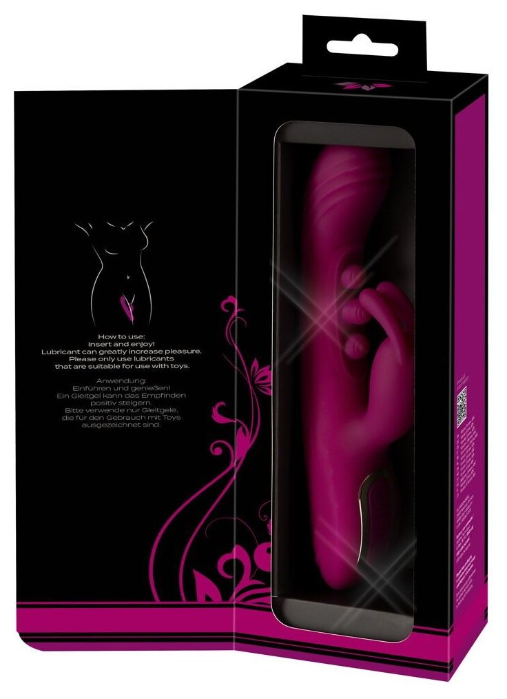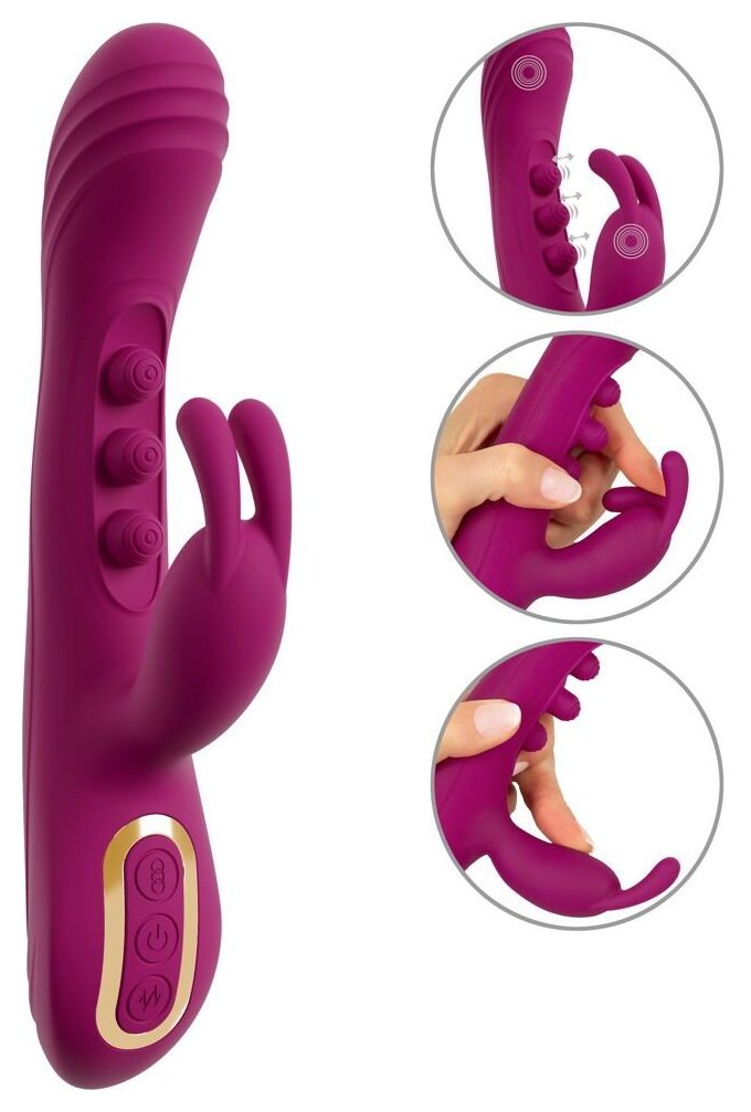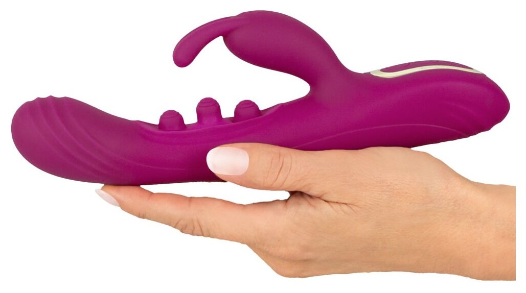 Инновационный вибратор-кролик с 2 функциями. Интенсивная стимуляция облегчает сквиртинг. Стимулирует внутри и снаружи одновременно. Функция 3-кратного стука (7 режимов) для G-зоны. 7 режимов вибрации для клитора и вагины. 3 тихих, мощных моторчика. Простое управление одним нажатием кнопки. Функциями можно управлять отдельно. Шелковистый мягкий силикон. Перезаряжаемый - в комплекте USB-кабель для зарядки. Рабочая длина - 13 см.