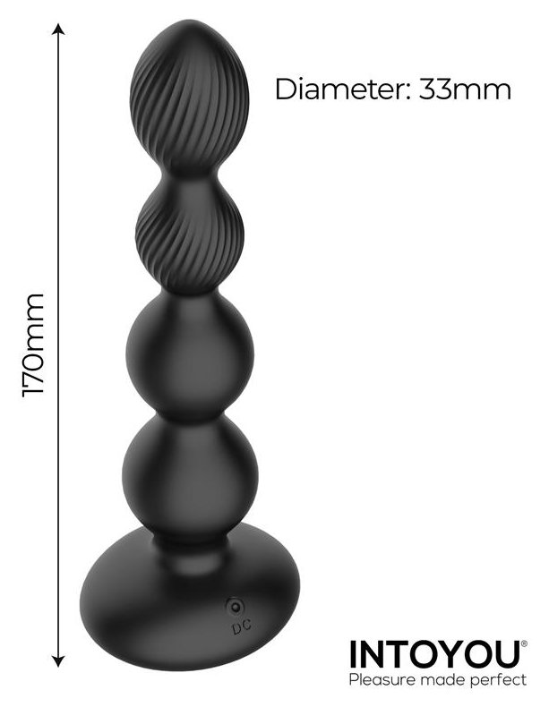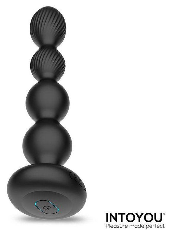 Черная анальная ёлочка с вибрацией, вращением и пультом ДУ