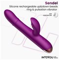 Фиолетовый интерактивный вибратор-кролик с кольцом из бусин и пульсацией Sendel