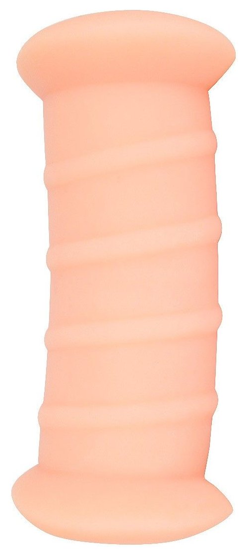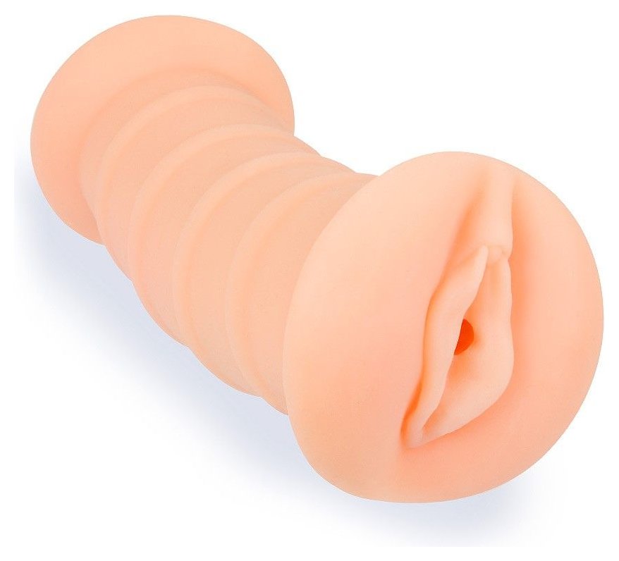 Телесный двусторонний мастурбатор с вибропулей и эрекционными кольцами в комплекте