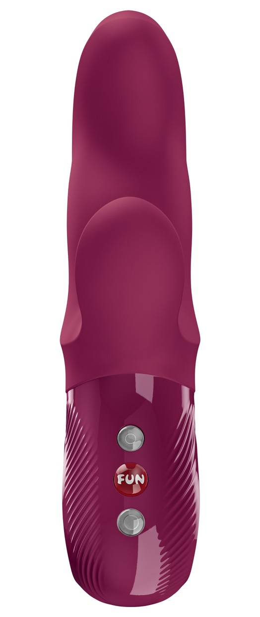 Бордовый вибратор с клиторальным стимулятором Miss Bi - 17 см