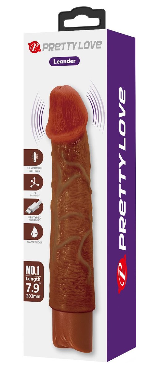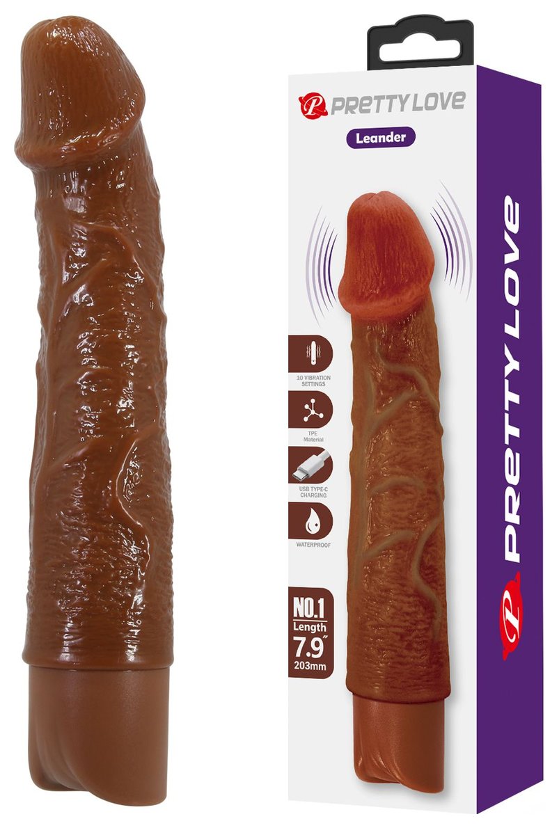 Коричневый реалистичный вибратор Leander - 20,3 см