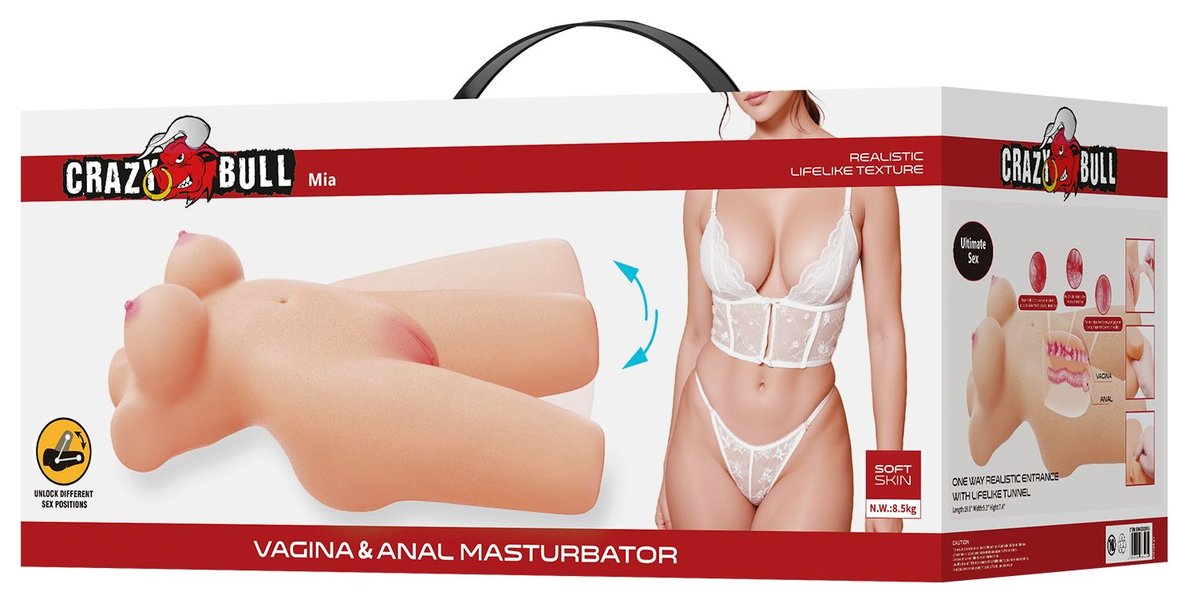 Секс-кукла Mia выполнена в образе взрослой женщины с идеальными изгибами для максимально реалистичного опыта. У неё большая округлая грудь, упругая попка и стройная талия, а внутренняя структура включает два канала — вагинальный и анальный для насыщенной стимуляции. Подвижные ноги позволяют принимать удобные позы и экспериментировать с любимыми позициями.