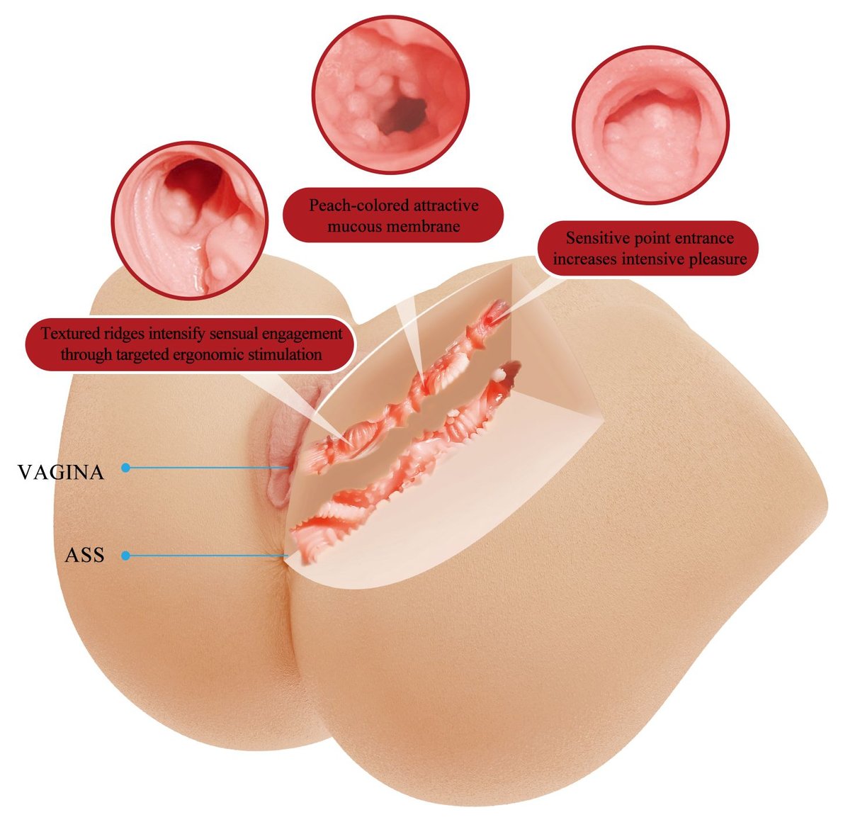 Реалистичный мастурбатор Vivian с вибростимуляцией создан для максимального удовольствия. Изготовленный из безопасного TPR-материала с реалистичной формой, он обеспечивает естественные ощущения и глубокое погружение. Устройство имеет 2 рабочих тоннелях: вагину и попку. Также оснащено 10 режимами вибрации и интимными звуковыми эффектами, полностью водонепроницаемо и легко очищается, что гарантирует долговечность и комфорт в использовании. Внутренняя структура продумана до деталей: персикового цвета слизистая оболочка создаёт эффект настоящей анатомии, вход с чувствительной точкой усиливает интенсивность стимуляции, а текстурированный рельеф обеспечивает целенаправленное воздействие для максимально насыщенных ощущений.
