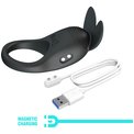 Эрекционное кольцо с вибрацией для усиления удовольствия вдвоём. Оснащено мощным мотором с 10 режимами вибрации и удобной магнитной зарядкой. Уникальный дизайн с «ушками кролика» обеспечивает точечную клиторальную стимуляцию, усиливая ощущения партнёрши. Идеально подходит для соло- и парной игры, добавляя новые уровни интимности и ярких эмоций. Ширина - 3,8 см.