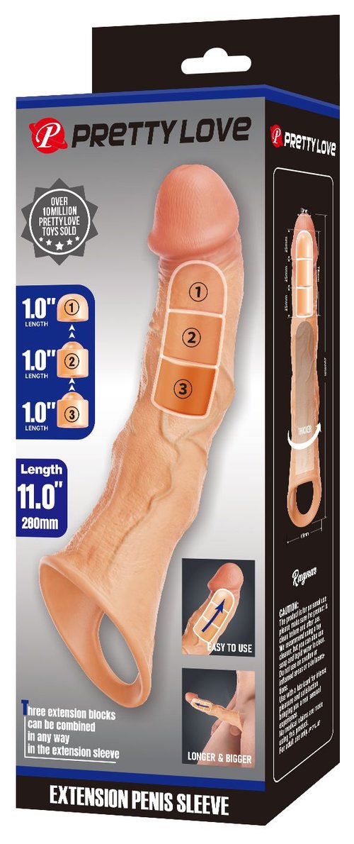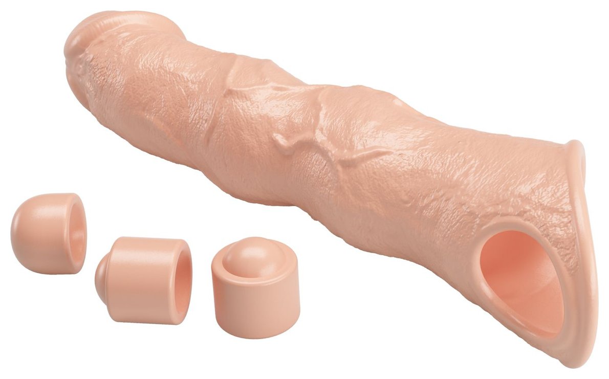 Телесный фаллоудлинитель с 3 вставками - 28 см