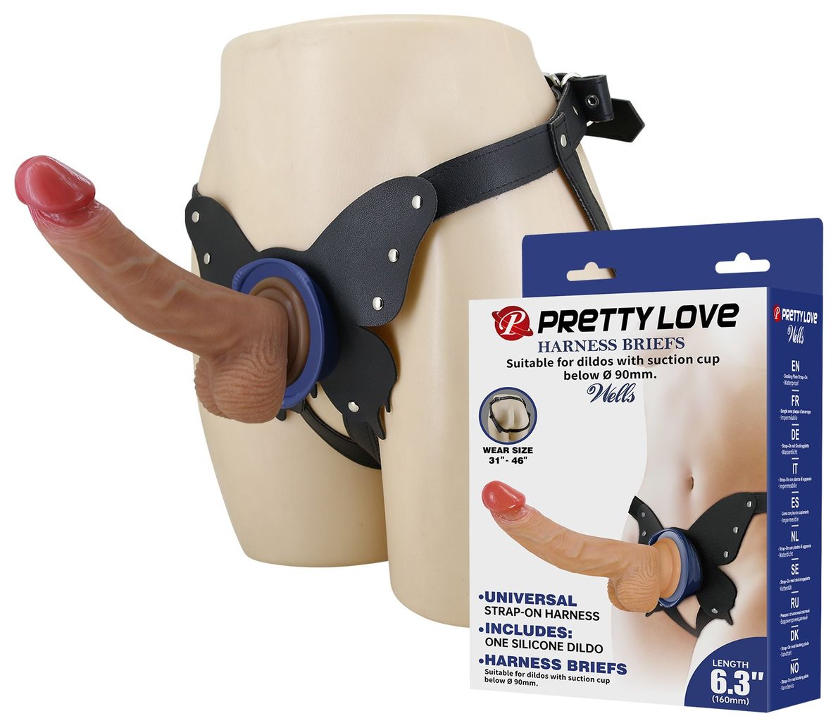 Поясной страпон Wells: трусики в форме бабочки и фаллоимитатор-насадка