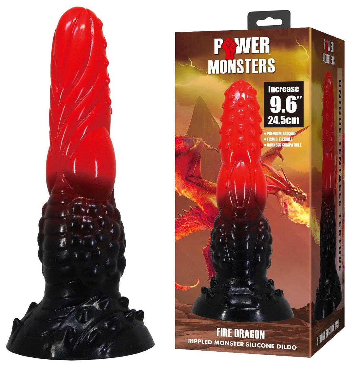 Силиконовый фантазийный фаллоимитатор Fire Dragon - 24,5 см