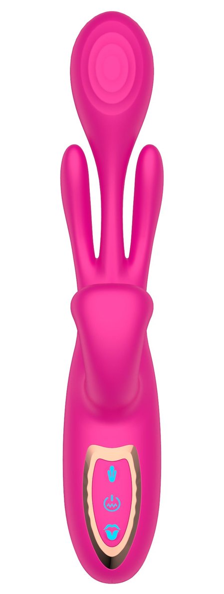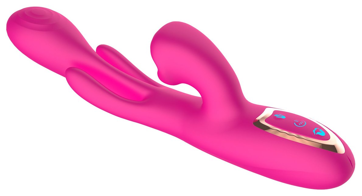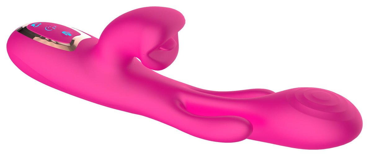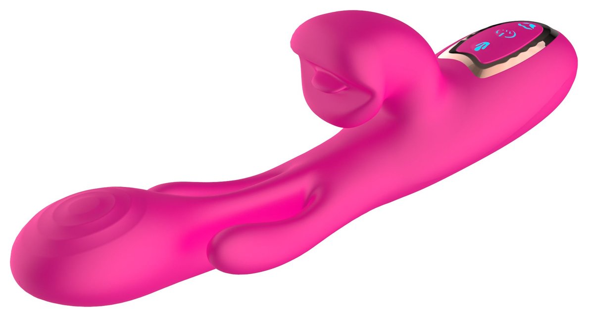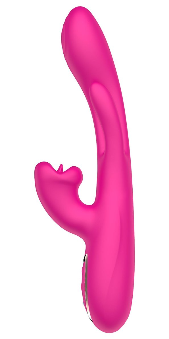 Розовый вибратор со стимуляцией клитора и фингерингом. 10 режимов вибрации.
