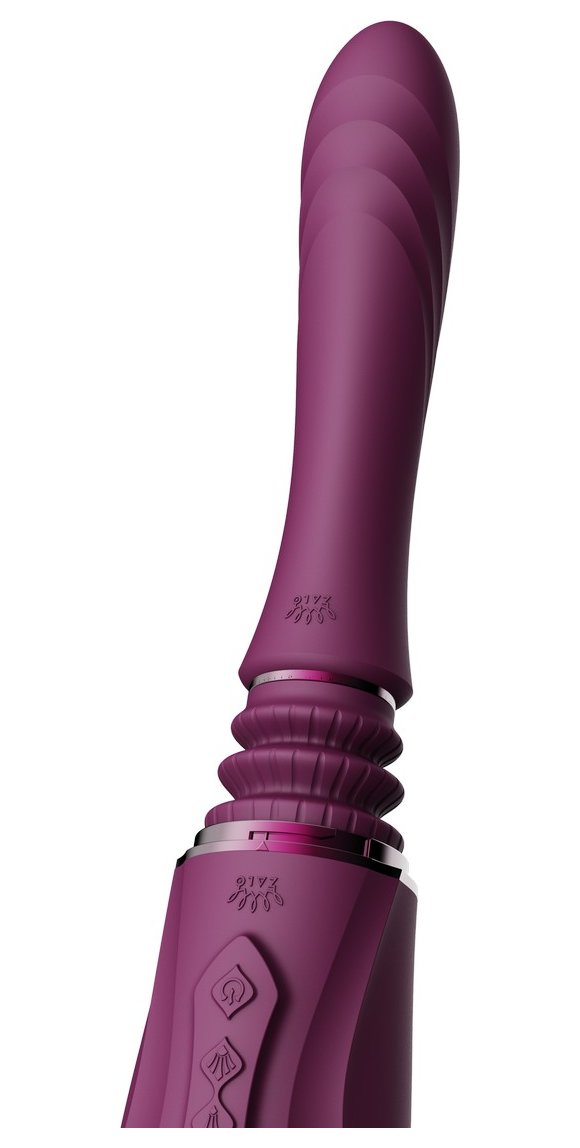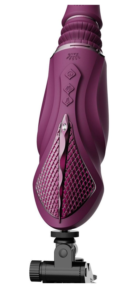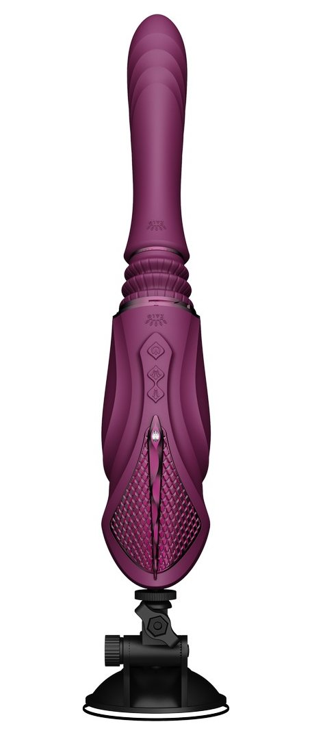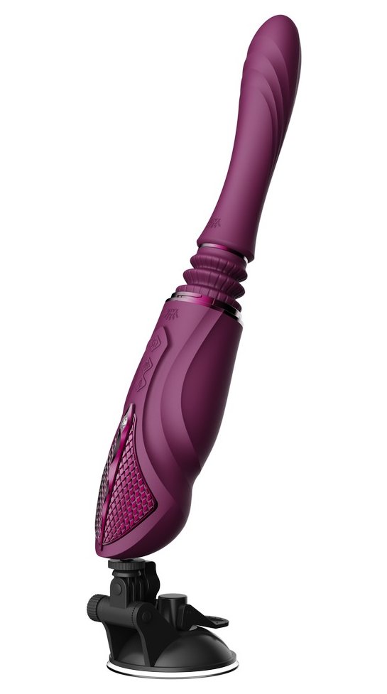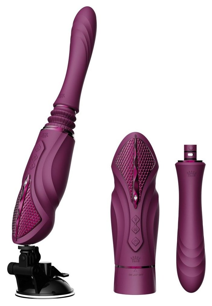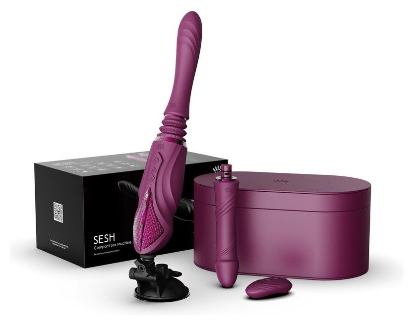 Фиолетовая секс-машина с функцией нагрева, насадками и присоской Sesh