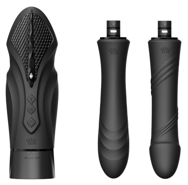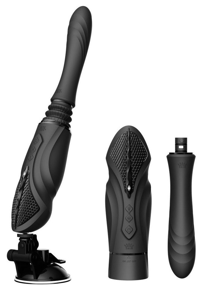 Черная секс-машина с функцией нагрева, насадками и присоской Sesh