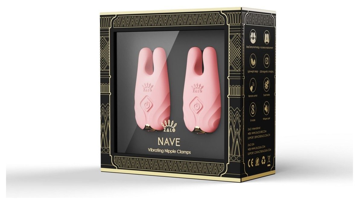 Если ты ищешь способ превратить игру с сосками в настоящее искусство, то Zalo Nave — это именно то, что тебе нужно. Вдохновлённый изяществом и силой древнеегипетской богини Нефтиды, Nave сочетает в себе мощные вибрации, инновационную технологию EasyClamp и роскошный дизайн, который сделает каждую секунду незабываемой. Nave оснащён двойными моторами, встроенными в кончики в форме кошачьих ушек, которые окружают соски глубокими, ритмичными вибрациями. Благодаря технологии EasyClamp зажимы легко крепятся — просто сожми боковые стороны, и они мягко, но надёжно зафиксируются на сосках или других эрогенных зонах. А благодаря двум комплектам сменных наконечников Nave подходит любым размерам сосков. Наконечники для сосков диаметром 8–15 мм (также подходят тем, кто кормил грудью) с плоской внутренней поверхностью для комфортного захвата. Наконечники для сосков диаметром 5–10 мм с точками трения внутри, которые усиливают ощущения. Nave работает практически бесшумно (менее 40 дБ), что делает его идеальным для скрытных игр. А благодаря совместимости с приложением ZALO Remote Pro ты можешь управлять вибрациями на расстоянии — или доверить это своему партнёру, где бы он ни находился. Технология EasyClamp — лёгкое крепление без лишних усилий. Просто сожми боковые стороны, и зажимы мягко зафиксируются на сосках, не вызывая дискомфорта. Двойные моторы — мощные вибрации в каждом наконечнике обеспечивают глубокую стимуляцию, которая может довести до невероятных ощущений. 8 режимов вибрации — выбери интенсивность, которая тебе нравится: от нежных пульсаций до сильных колебаний. Два комплекта сменных наконечников — подходят для любых размеров сосков, включая тех, кто кормил грудью. Управление на расстоянии — в комплекте идёт мягкий силиконовый пульт, который работает на расстоянии до 8 метров. А с помощью приложения ZALO Remote Pro ты можешь отдать контроль партнёру или управлять Nave из любой точки мира через Bluetooth и Wi-Fi. Защита от брызг (IPX4) — Nave можно использовать в ванне или под душем. USB-зарядка — 2 часа зарядки обеспечивают 1 час непрерывного наслаждения. Премиальный силикон — Dow Corning food-grade silicone с Softek™ покрытием гарантирует безопасность, мягкость и лёгкость в уходе.