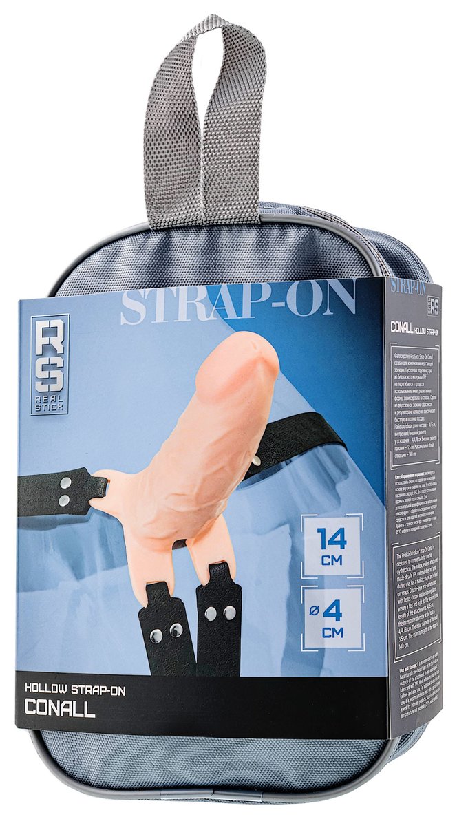 Фаллопротез (полый страпон) RealStick Strap-On Conall - пустотелая насадка, внешне напоминающая классический страпон, внутри — специальная полость для члена. Упругая насадка из безопасного материала TPE подходит для вагинального и анального секса – даже при полной эректильной дисфункции насадка не будет сгибаться. Гладкая головка розового оттенка имеет немного заостренную форму, что делает ввод более комфортным. Ярко выраженные вены по поверхности и естественный цвет добавляют фаллоимитатору реалистичности. Стропы из двухслойной экокожи с фастексом (быстросъемной пряжкой) и регуляторами натяжения обеспечивают быструю и плотную посадку. Пояс с внутренней стороны покрыт влагопоглощающим бархатом. Хольнитены (круглые заклепки) выполнены из нержавеющей стали или латуни. С внутренней стороны хольнитены покрыты защитным слоем, чтобы не вызывать аллергии при соприкосновении с кожей. Насадка несъемная. В комплекте тканевая косметичка с прозрачным окном – обеспечивает удобство при хранении. Рабочая длина - 14 см. Максимальный обхват стропами – 140 см.