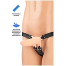 Телесный фаллопротез на черных ремнях Conall - 15 см
