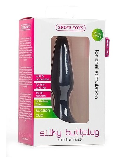 Черная анальная втулка Silky Buttplug Medium - 12,5 см