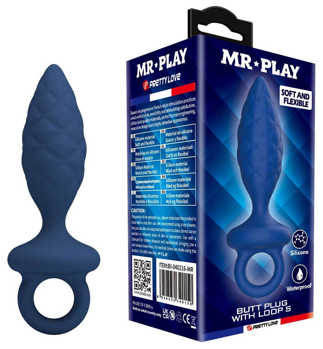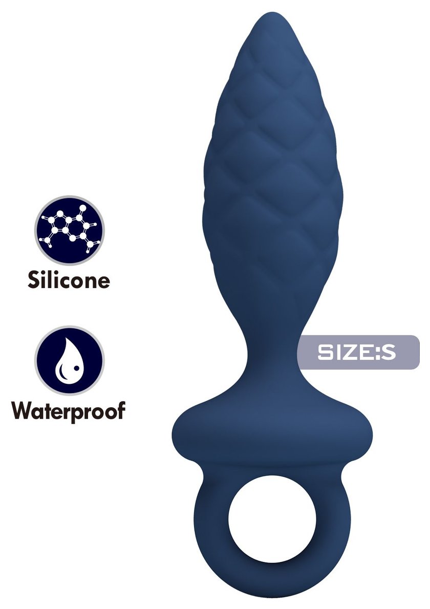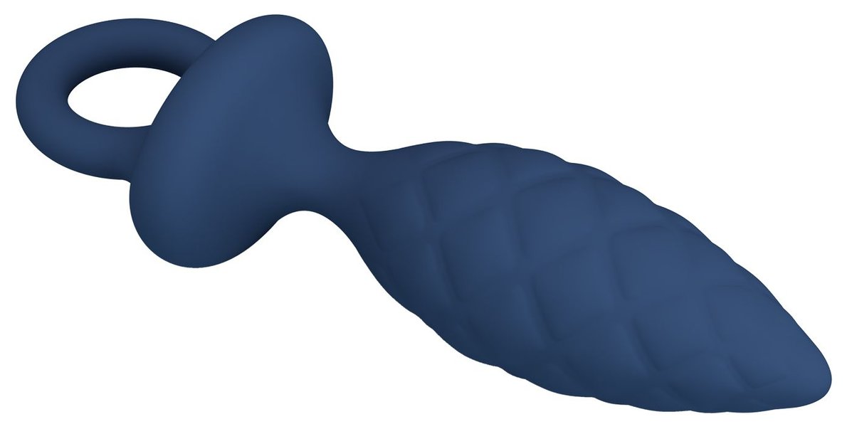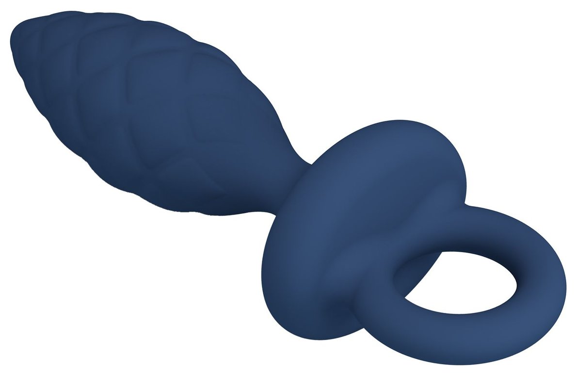Синяя анальная пробка с кольцом Butt Plug with Loop S - 11,5 см