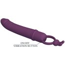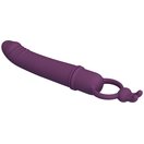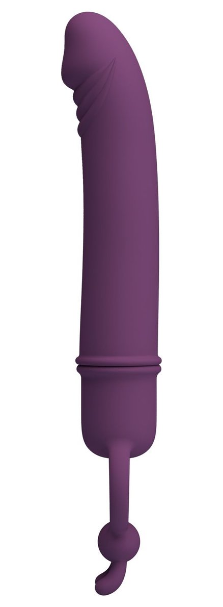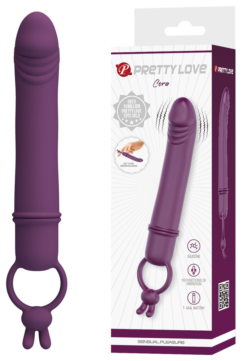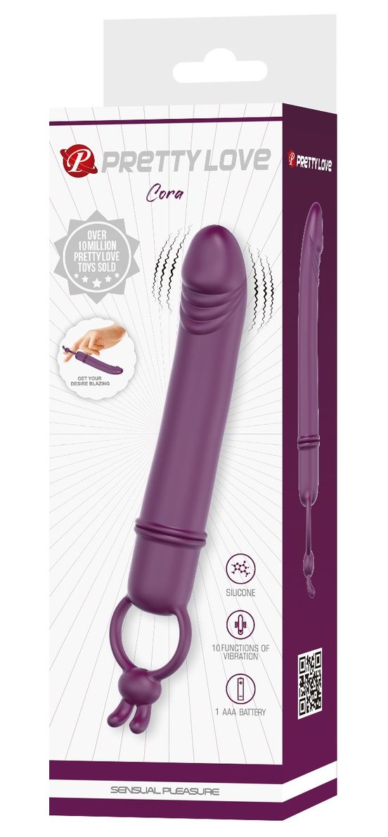 Сливовый вибратор с кольцом Cora. Выполнен из силикона. Имеет 10 режимов вибрации. Рабочая длина - 9 см.
