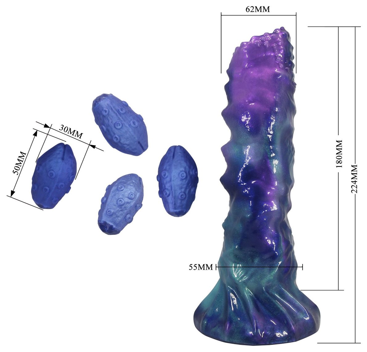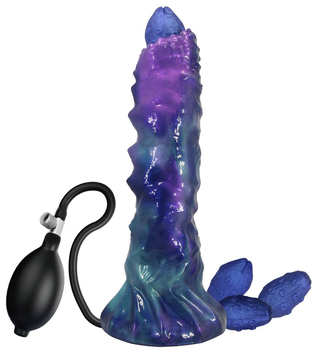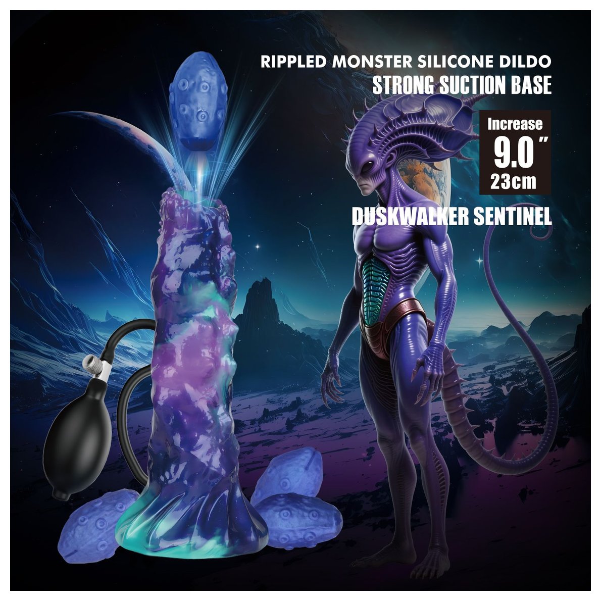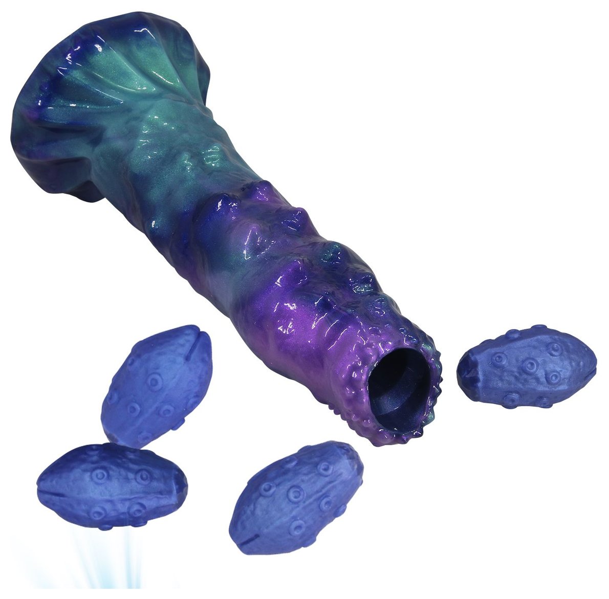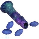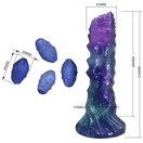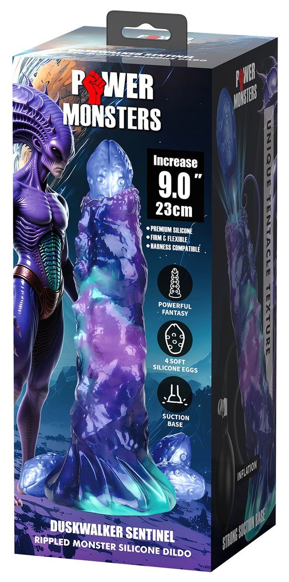 Фиолетовый яйцеродящий фаллоимитатор Duskwalker Sentinal на присоске. Выполнен из силикона. 4 яйца двигаются благодаря сжатию груши. Рабочая длина - 18 см.
