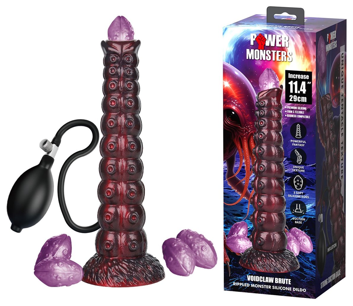 Яйцеродящий фаллоимитатор на присоске Voidclaw Brute. Выполнен из силикона. 4 яйца двигаются благодаря сжатию груши. Рабочая длина - 25 см.