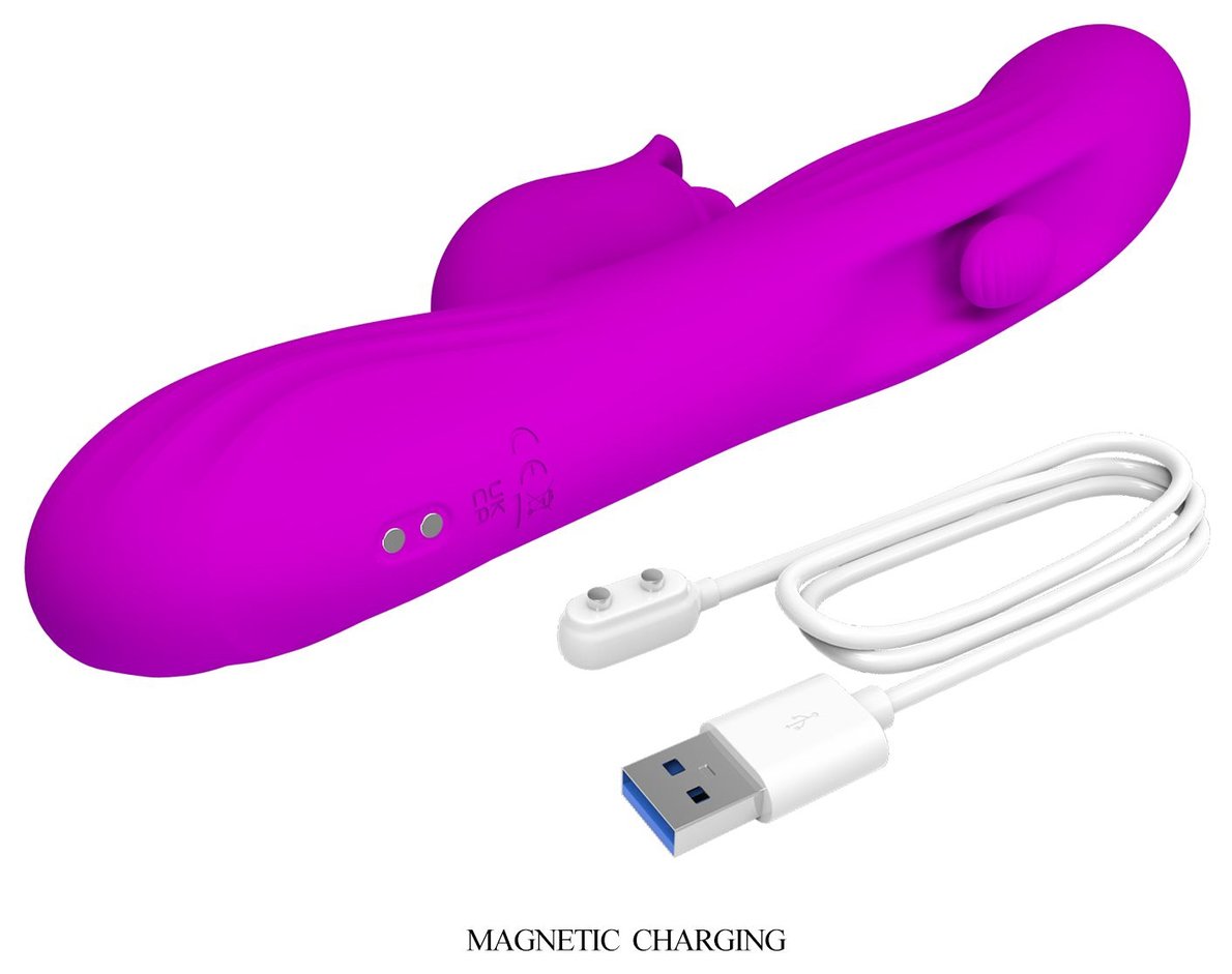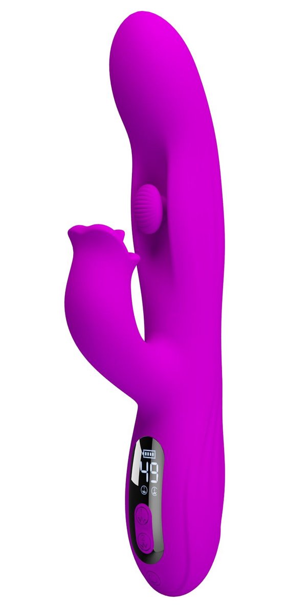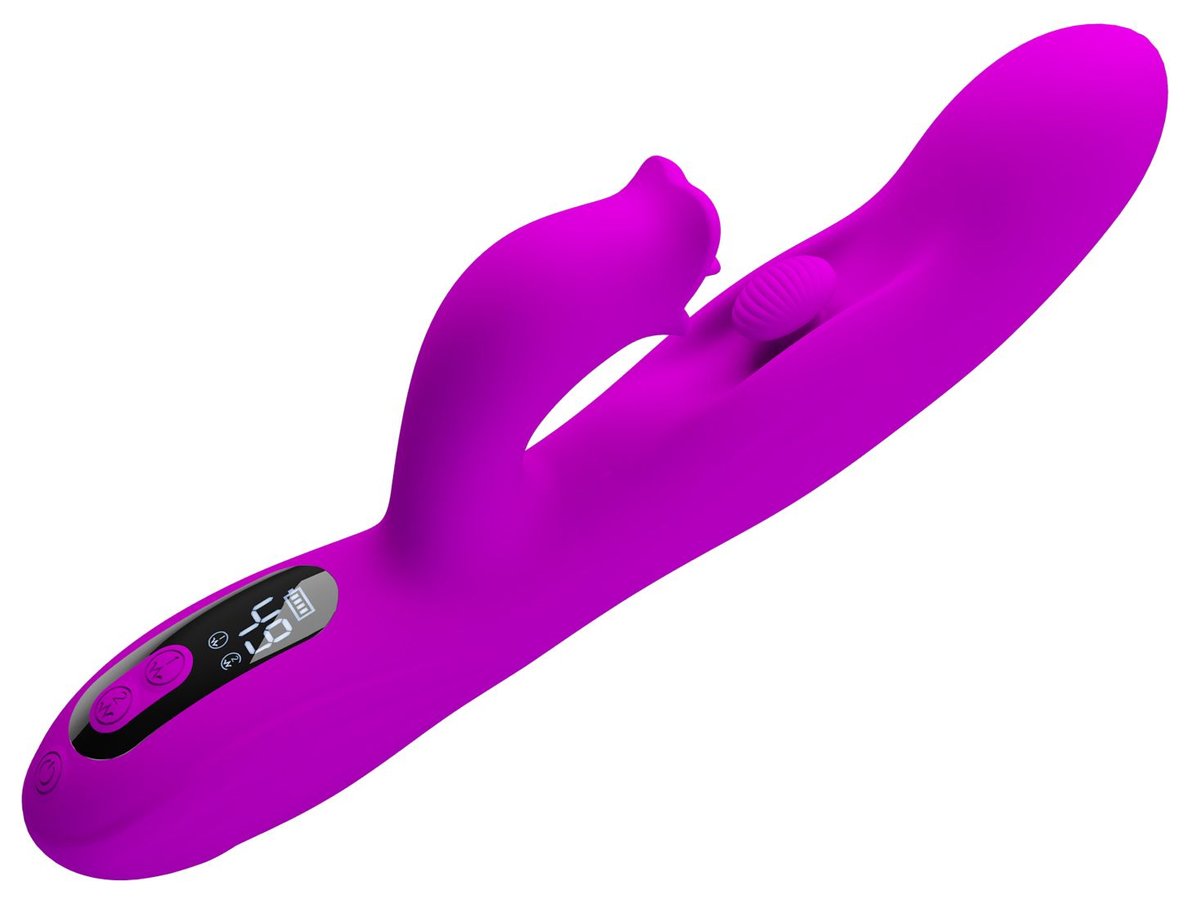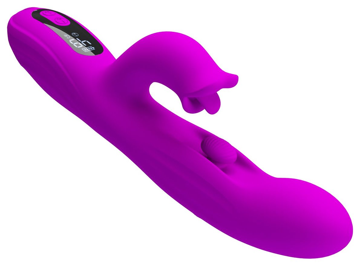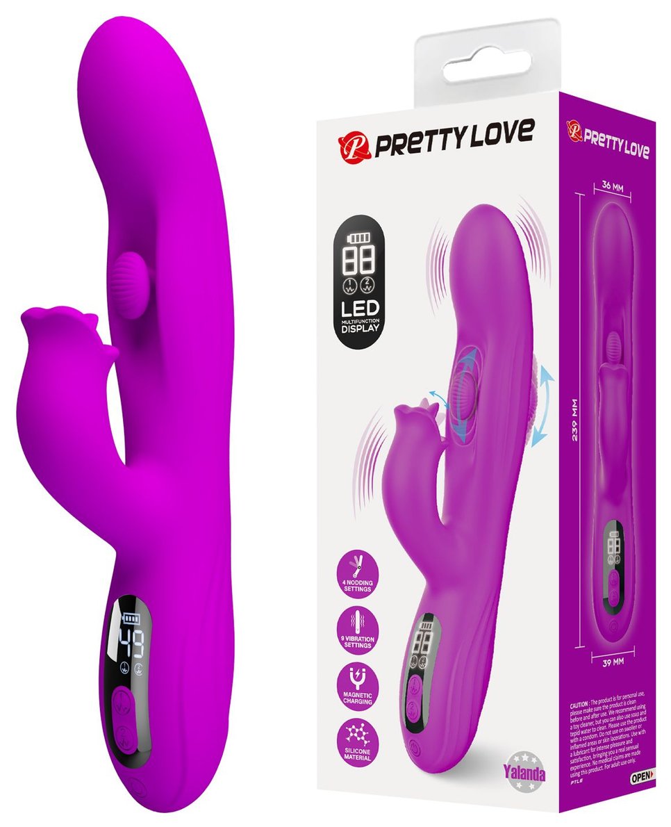 Лиловый вибромассажёр-кролик со стимуляцией точки G Yalanda. 9 режимов вибрации, 4 режима кивания. Рабочая длина - 13,3 см.