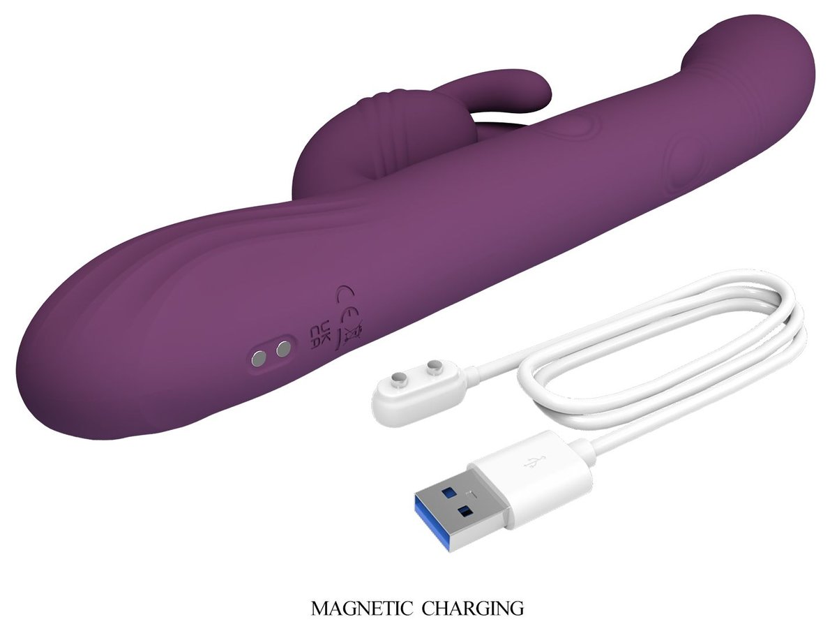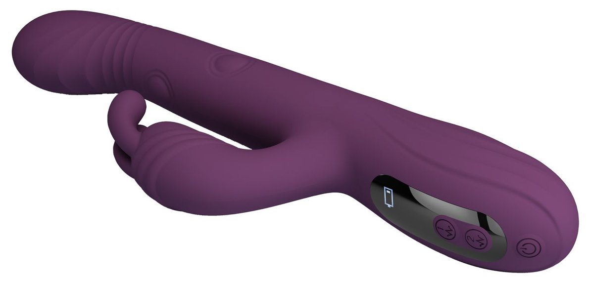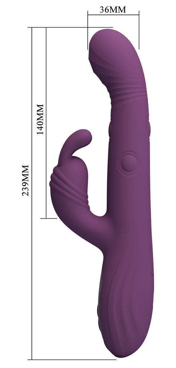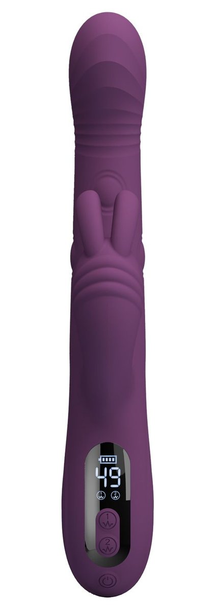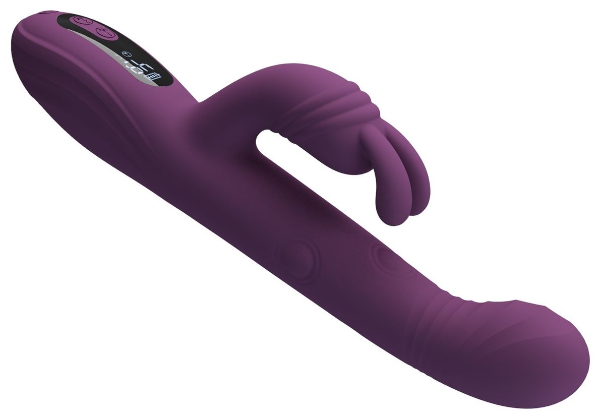 Фиолетовый вибромассажёр-кролик Dee. 9 режимов вибрации, 4 режима кивания, 4 режима постукивания. Рабочая длина - 14 см.