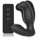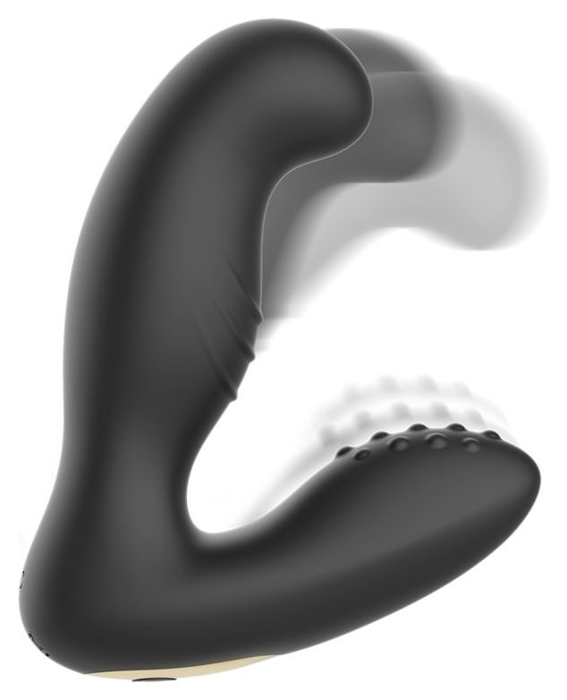 Черный вибромассажер простаты с ротацией и пультом ДУ