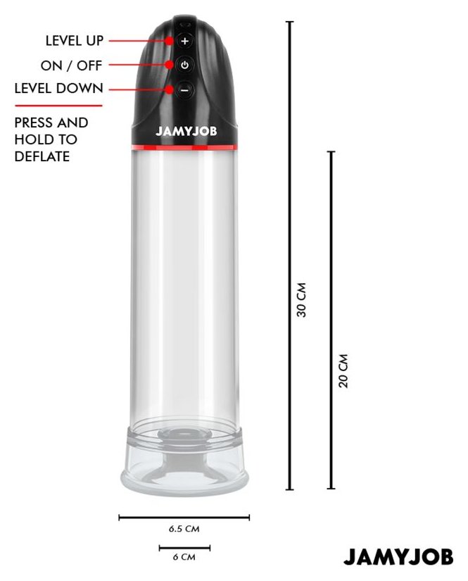 Автоматическая помпа для увеличения пениса, сочетающая высокие технологии и эргономичный дизайн для улучшения размера и производительности. Мощный мотор создаёт стабильное и эффективное всасывание, позволяя выбирать один из трёх режимов интенсивности и темпа, а система точной регулировки уровня даёт возможность подобрать оптимальный уровень давления под индивидуальные потребности. Помпа подходит для разных размеров, а мягкий гипоаллергенный силикон без фталатов гарантирует безопасное и приятное взаимодействие с телом. Устройство полностью USB-заряжаемое, водонепроницаемое и легко очищаемое, что обеспечивает удобство, гигиену и долговечность. Рабочая длина - 20 см.