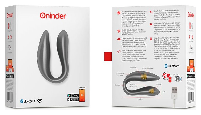 Вибратор для пар создан для тех, кто хочет разделить удовольствие и усилить интимную близость. Он одновременно стимулирует клитор, G-точку и пенис, обеспечивая синхронный оргазм и уникальный совместный опыт. Эргономичная форма адаптируется к телу, остаётся на месте во время использования, а два мощных мотора гарантируют глубокие и интенсивные ощущения. Устройство полностью водонепроницаемо (IPX7), легко очищается и совместимо с лубрикантами на водной основе. Управление вибратором возможно как вручную, так и через приложение ONINDER, позволяющее менять режимы, интенсивность и вибрационные программы, синхронизировать их с музыкой или дать контроль партнёру на расстоянии. Вибратор подходит для игр вдвоём, для удалённого контроля или самостоятельного использования, обеспечивает безопасное, бесшумное и персонализированное удовольствие благодаря мягкому медицинскому силикону и встроенному аккумулятору с USB-зарядкой. Диаметр вагинального отростка - 2 см.