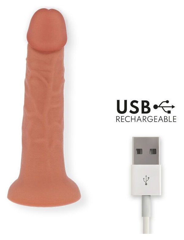 Телесный реалистичный вибратор с управлением через приложение - 17,5 см
