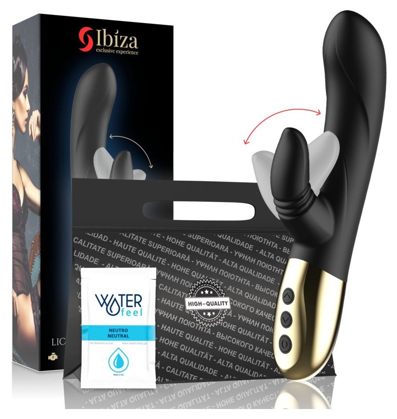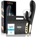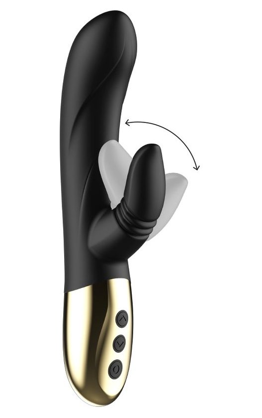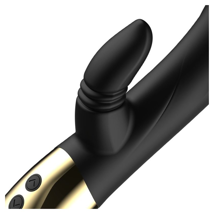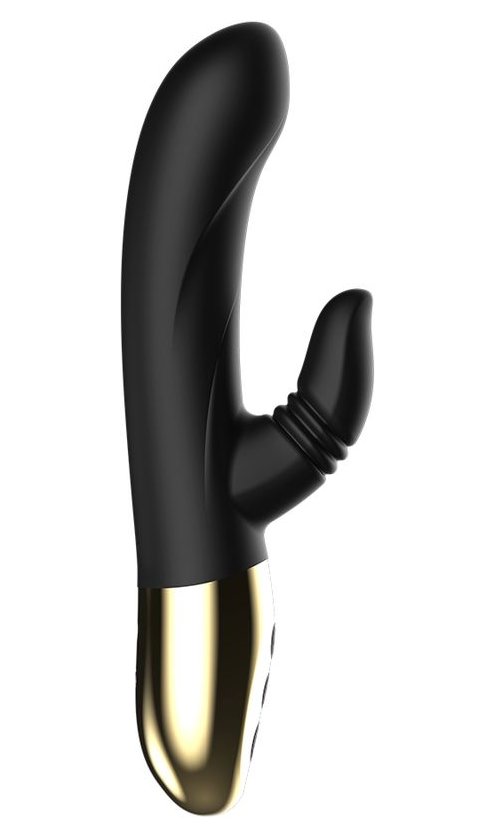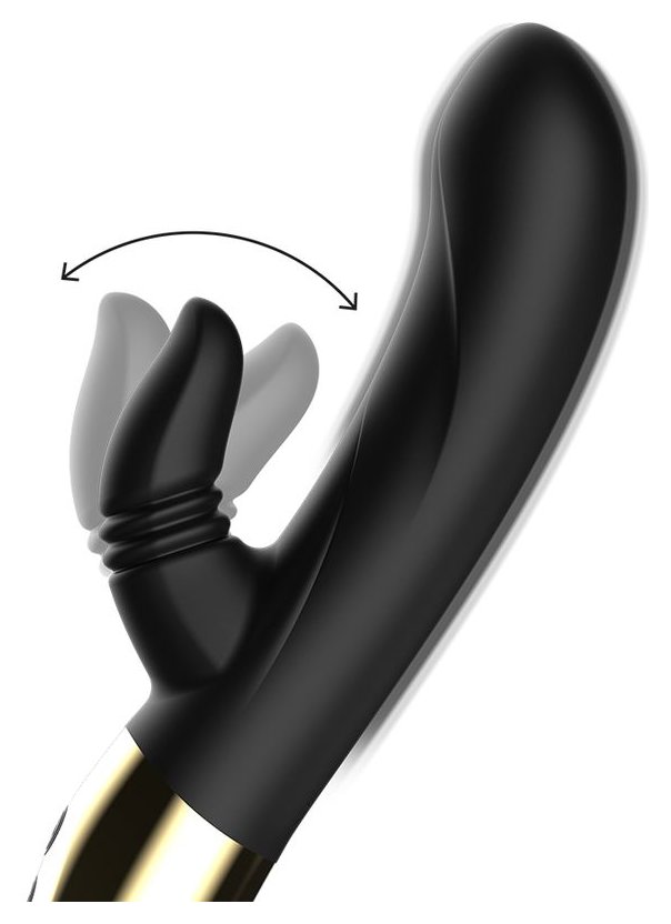 Черный вибратор-кролик с имитацией оральных ласк - 20 см