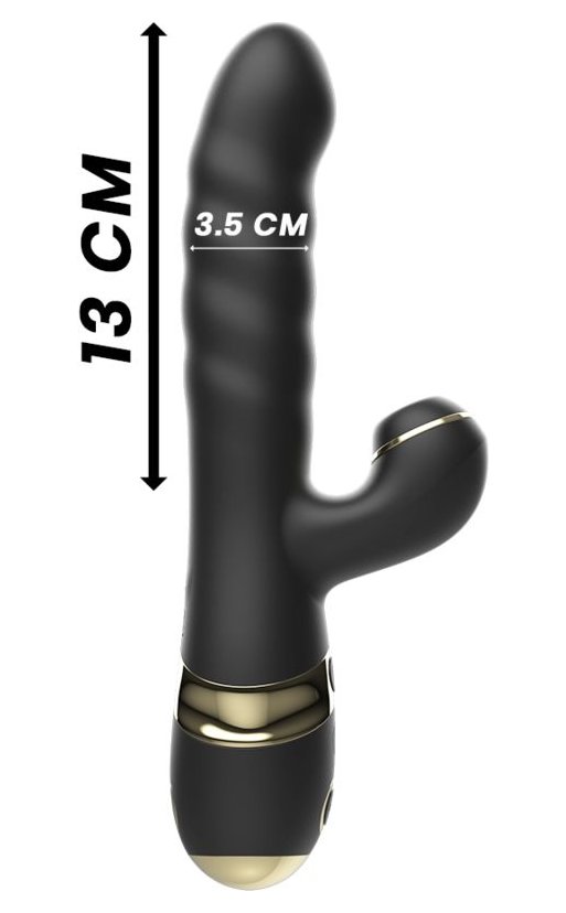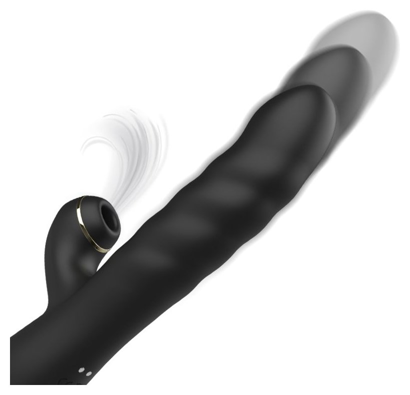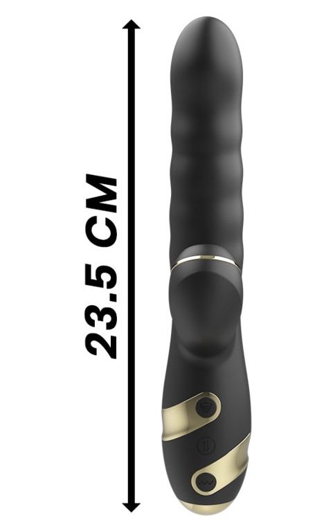 Черный вибратор-кролик с функциями пенетрации и всасывания - 23,5 см
