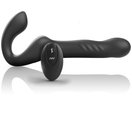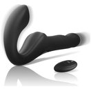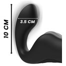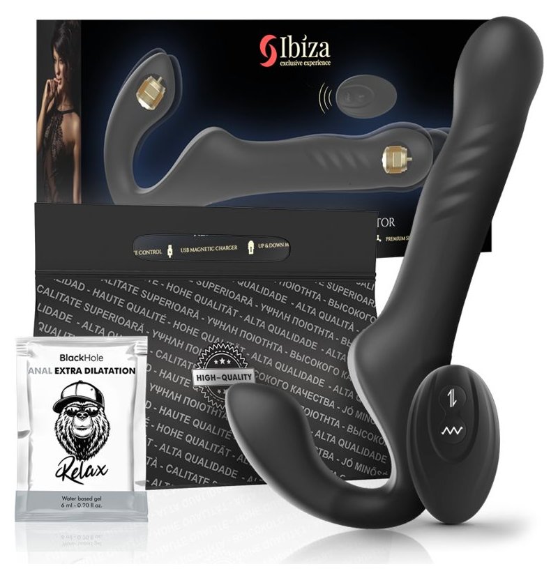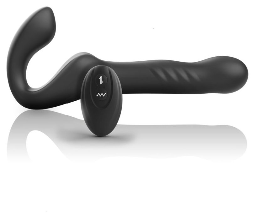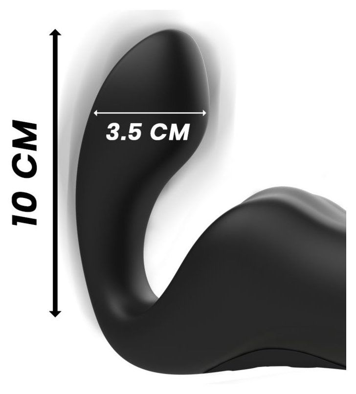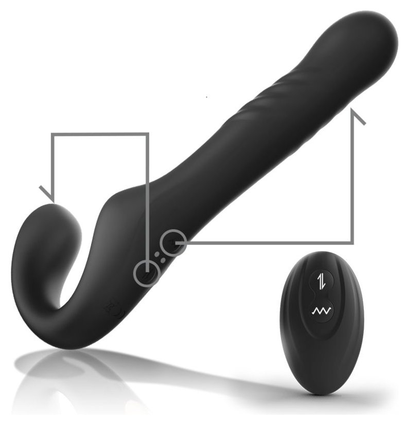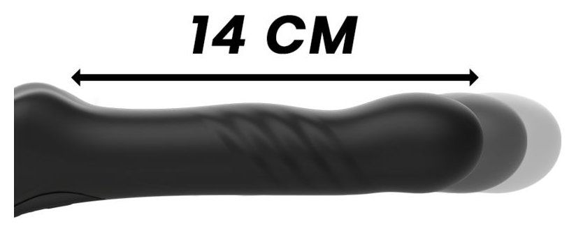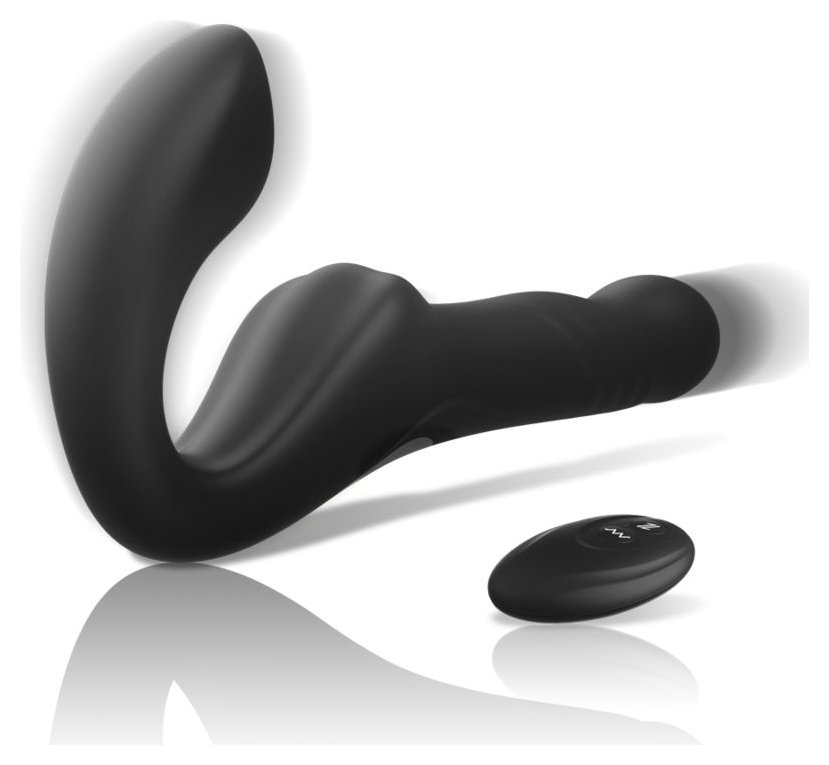 Силиконовый безремневой страпон с системой вибрации и возвратно-поступательных движений для одновременной стимуляции проникновения и точки G. Два независимых мотора создают до 500 комбинаций вибрации, позволяя подобрать интенсивность от нежной до максимально мощной. Изогнутый короткий конец обеспечивает надёжную фиксацию и интенсивный массаж точки G, за счет чего оба партнёра получают максимальное удовольствие. Эргономичный дизайн с мягким гипоаллергенным медицинским силиконом делает использование комфортным и безопасным, материалы не содержат фталатов. Водонепроницаем (IPX6), работает от USB, заряжается за 120 минут и обеспечивает до 70 минут автономной работы. Управление осуществляется интуитивным пультом дистанционного управления, открывая точную настройку вибрации, интенсивности и сценариев игры. Идеален для парных игр, пеггинга и стимуляции нескольких эрогенных зон одновременно, создавая многосенсорный, контролируемый и насыщенный опыт удовольствия. Рабочая длина - 14 см. Длина вагинальной пробки - 10 см, диаметр - 3,5 см.