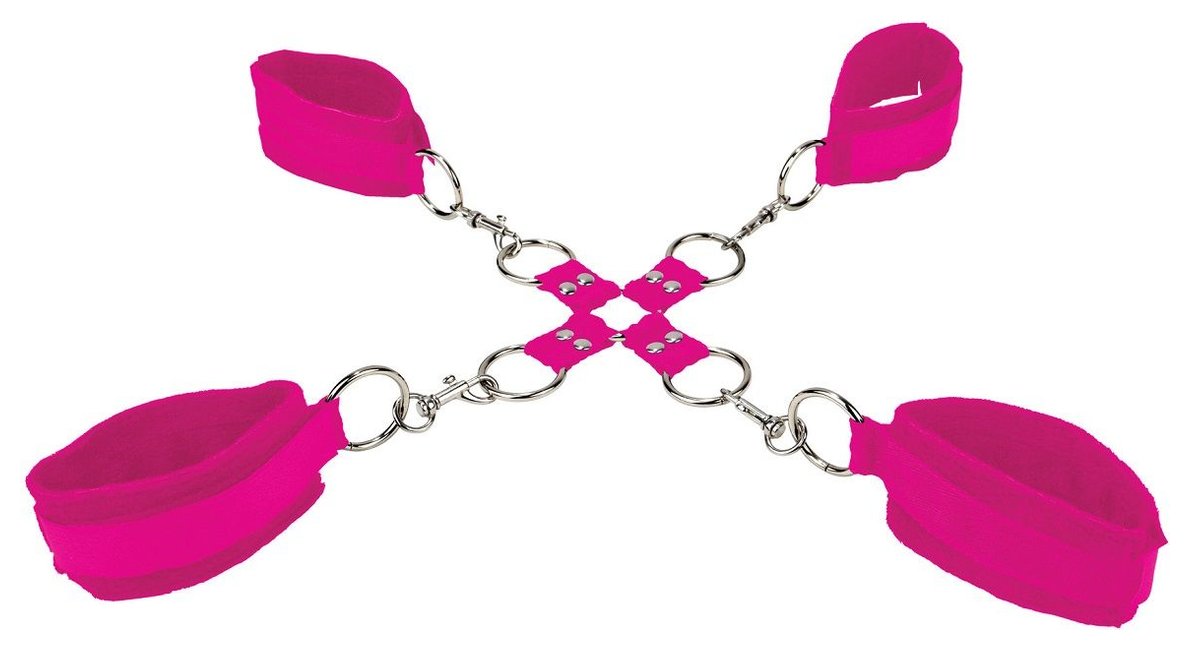 Отдайтесь партнеру полностью, используя фетиш-манжеты. Комплект для бандажа используется теми, кто любит подчиняться. Фетиш-манжеты соединены крестообразно друг с другом. Ширина оков - 5,5 см.