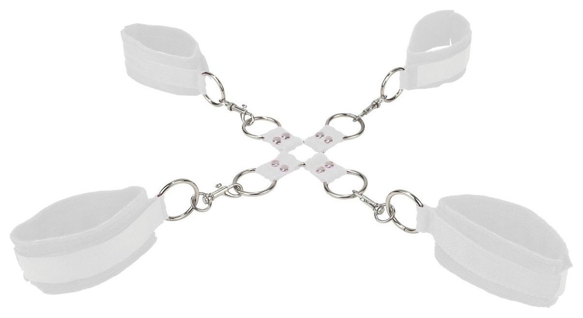 Отдайтесь партнеру полностью, используя фетиш-манжеты. Комплект для бандажа используется теми, кто любит подчиняться. Фетиш-манжеты соединены крестообразно друг с другом. Ширина оков - 5,5 см.
