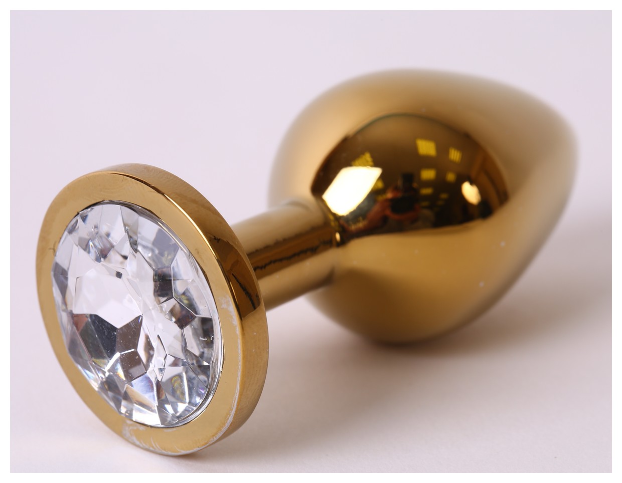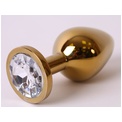 Большая золотистая анальная пробка с прозрачным кристаллом - 9,5 см